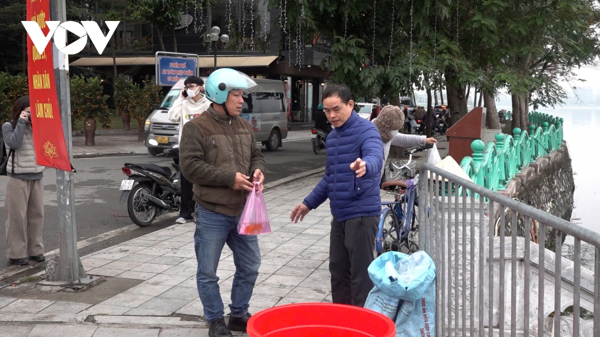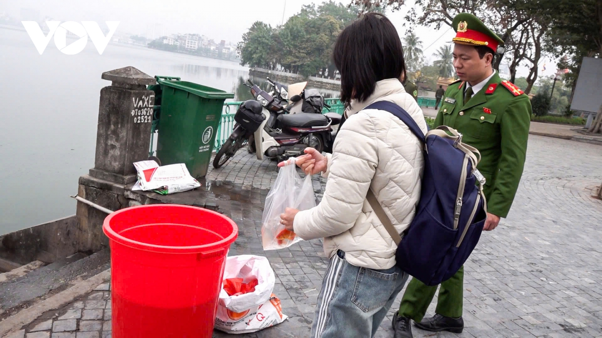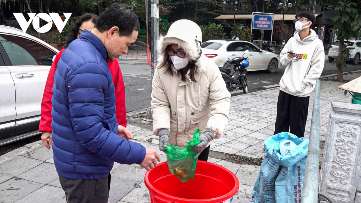 Trao đổi với phóng viên VOV.VN, ông Nguyễn Hải Linh, Phó trưởng phòng Kinh tế hạ tầng và Đô thị phường Tây Hồ, Hà Nội cho biết: "Hàng năm, người dân thường thả cá kèm theo túi nilon và đồ thờ cúng xuống hồ gây ảnh hưởng đến hệ sinh thái Hồ Tây. Năm nay, chúng tôi đã triển khai việc thu gom cá vào các thùng chứa chuyên dụng, sau đó sẽ đưa đến nơi phù hợp để đảm bảo sinh trưởng của cá. Đến nay, gần như 100% người dân đều chấp hành nghiêm túc, ý thức phân loại rác thải đã được nâng cao rõ rệt".
