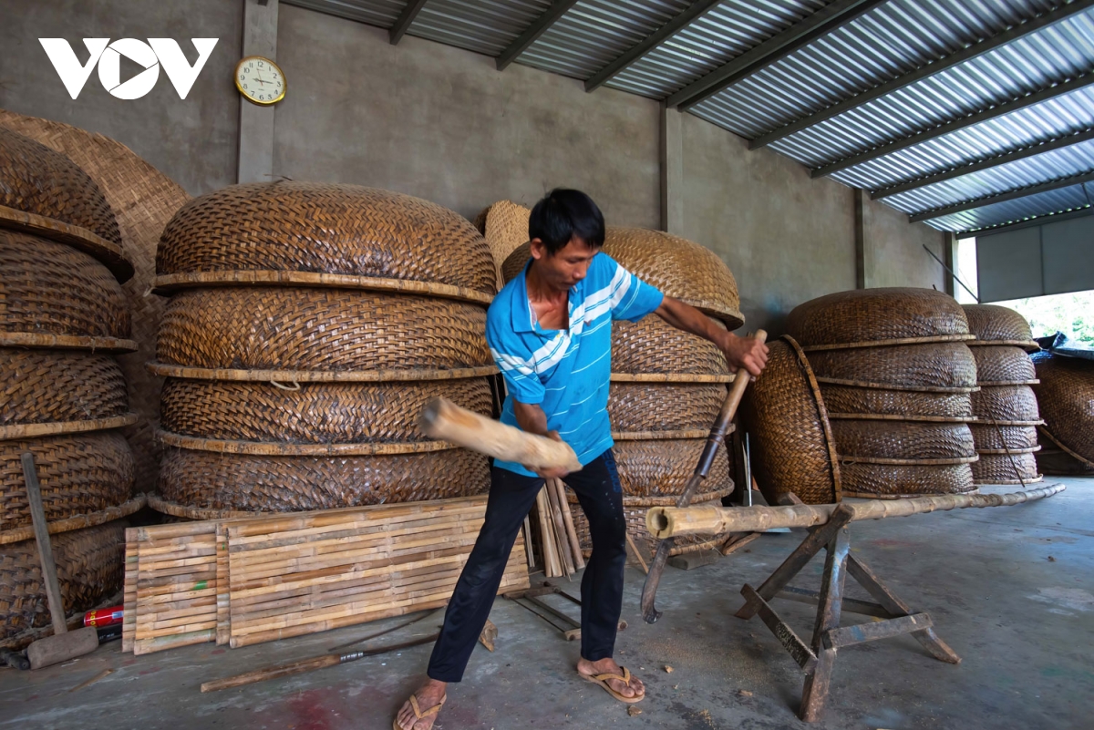 Tre được chọn để làm thúng phải là tre mỡ già độ 60% trở lên được lận vành rồi phơi khô.
