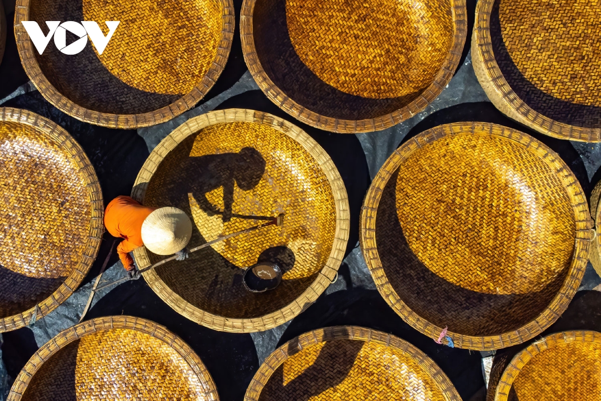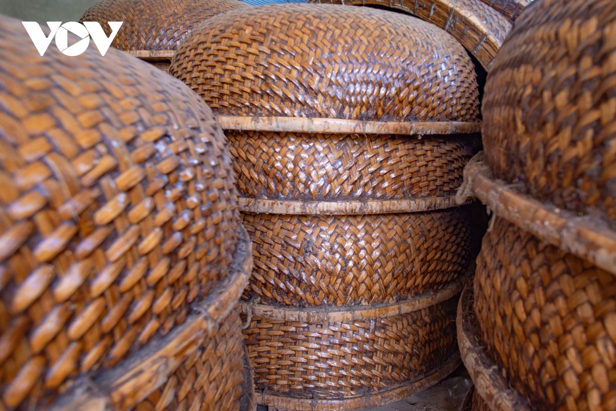 Các thúng chai hoàn chỉnh được quét dầu rái và phơi nắng tạo độ bền không thấm nước khi sử dụng.