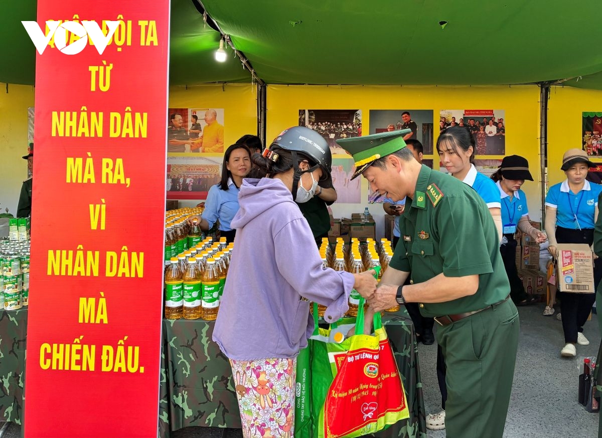 Trong khuôn khổ chương trình, “Phiên chợ 0 đồng - nghĩa tình quân dân” đã diễn ra như một điểm nhấn giàu nhân văn, góp phần chia sẻ khó khăn với người dân và lan tỏa tinh thần tương thân tương ái. Ban tổ chức trao 1.200 phần quà đến gia đình chính sách, hộ nghèo, hộ có hoàn cảnh khó khăn. Phiên chợ còn giới thiệu các sản phẩm đặc sản Tây Ninh, tổ chức trò chơi dân gian, gói bánh chưng, bánh tét, tạo không khí đoàn kết, vui tươi trước thềm năm mới.