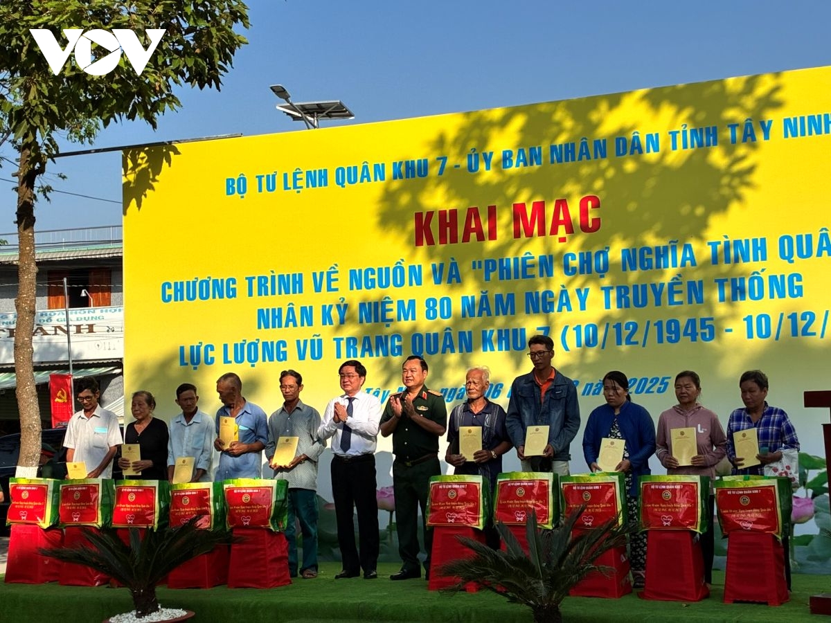 Ngày 6/12, Bộ Tư lệnh Quân khu 7 phối hợp UBND tỉnh Tây Ninh tổ chức khai mạc chương trình về nguồn và “Phiên chợ nghĩa tình quân dân” nhân kỷ niệm 80 năm Ngày truyền thống LLVT Quân khu 7 (10/12/1945 - 10/12/2025). Dự chương trình có Đại tướng Nguyễn Trọng Nghĩa, Ủy viên Bộ Chính trị, Bí thư Trung ương Đảng, Chủ nhiệm Tổng cục Chính trị QĐND Việt Nam.
