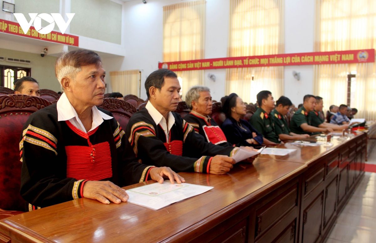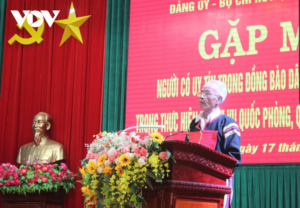 Phát biểu tại buổi gặp mặt, Đại tá Niê Ta, Chỉ huy trưởng Bộ Chỉ huy Quân sự tỉnh Đắk Lắk cảm ơn những đóng góp to lớn, quý báu của các già làng, trưởng buôn, người có uy tín đối với nhiệm vụ quân sự, quốc phòng địa phương. Đồng thời đề nghị người có uy tín tiếp tục kết hợp hài hòa giữa luật pháp và luật tục, khéo léo tuyên truyền, vận động bà con.