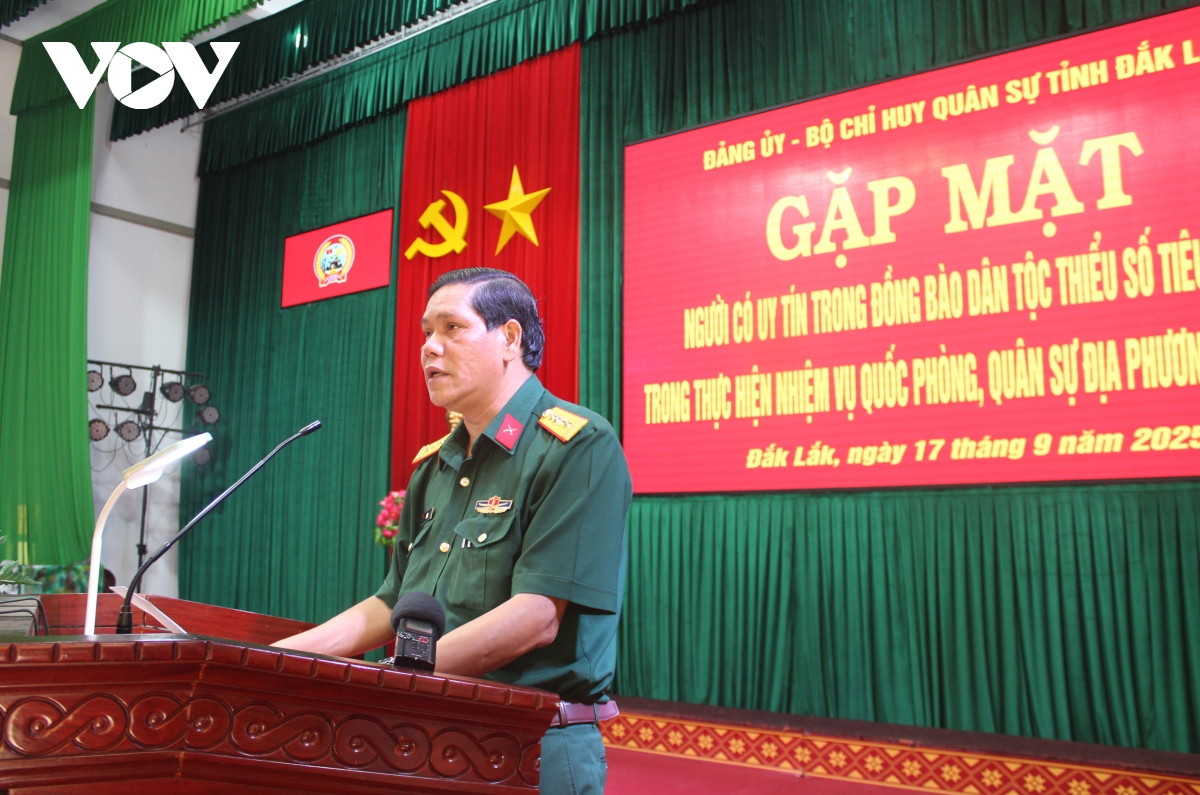 VOV.VN - Chiều nay (17/9), Bộ Chỉ huy quân sự tỉnh Đắk Lắk tổ chức gặp mặt người có uy tín trong vùng đồng bào dân tộc thiểu số. Trong tình hình mới, đội ngũ này tiếp tục là cầu nối tin cậy trong thực hiện nhiệm vụ quốc phòng, quân sự địa phương.