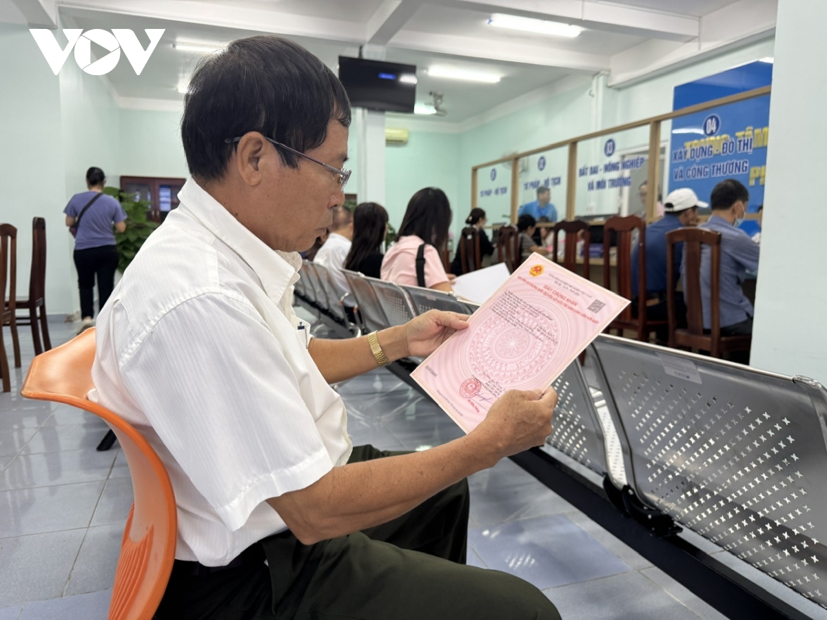 "Rất mừng là hôm nay tôi được nhận chứng nhận quyền sử dụng đất có số đầu tiên từ khi hình thành chính quyền 2 cấp, chỉ trong vòng 20 ngày. Về thủ tục hành chính từ lúc trước và sau sáp nhập tôi rất hài lòng, rất nhanh gọn. Giờ muốn xây dựng nhà ở thì cứ theo quy trình của từng khu vực, không phải xin phép, mà thủ tục thì nhanh, gọn chỉ một cửa", ông Phạm Văn Phiên chia sẻ niềm vui.