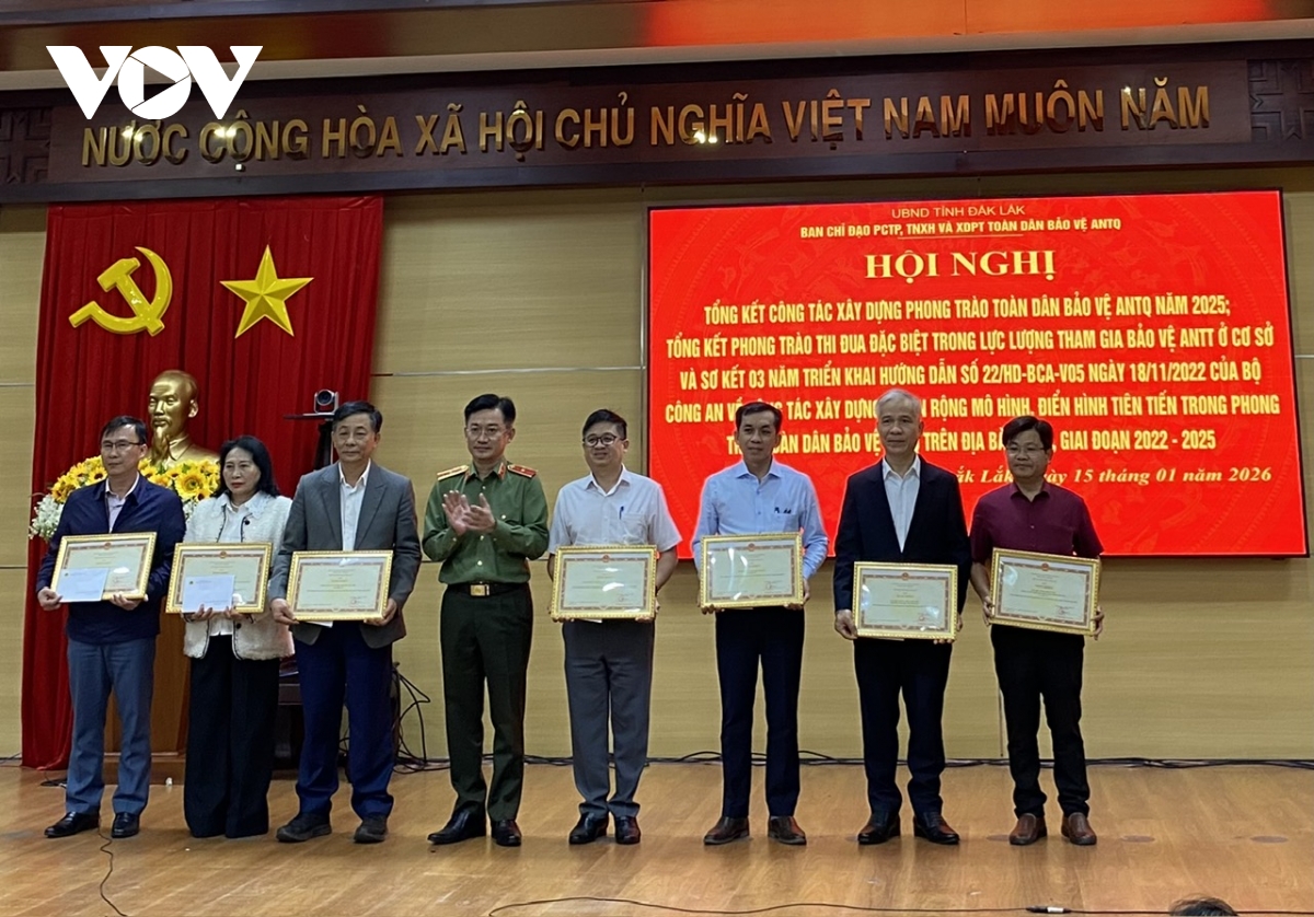 Ngày 15/1, tỉnh Đắk Lắk tổng kết phong trào Toàn dân bảo vệ an ninh Tổ quốc. Năm 2025, phong trào tại Đắk Lắk tiếp tục lan tỏa sâu rộng, phát huy sức mạnh người dân địa phương trong giữ gìn an ninh, trật tự. Nhiều cách làm hiệu quả đã góp phần củng cố vững chắc thế trận an ninh nhân dân ngay từ cơ sở.