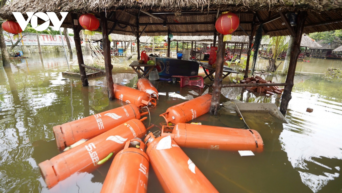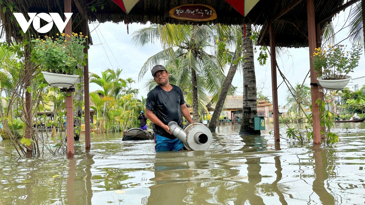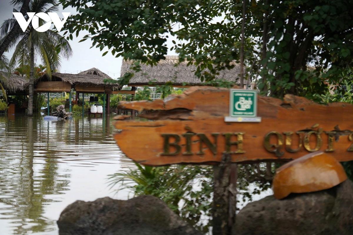 Đến trưa 25/10, khu vực này vẫn đang ngập nước, hoạt động kinh doanh không thể tiếp tục. Khu du lịch Bình Quới 2 và cả các hàng quán gần đó phải đóng cửa. Nhiều hộ dân ở khu vực ngập cũng đành bất lực trước con nước; đồ đạc, xe cộ…bị ngâm trong nước.