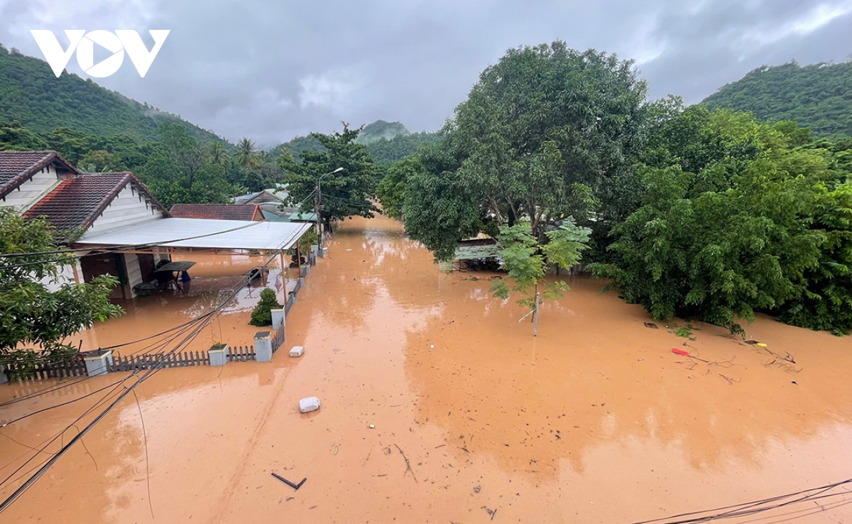 Xã Thạnh Mỹ (huyện Nam Giang, tỉnh Quảng Nam cũ) mênh mông nước chiều nay