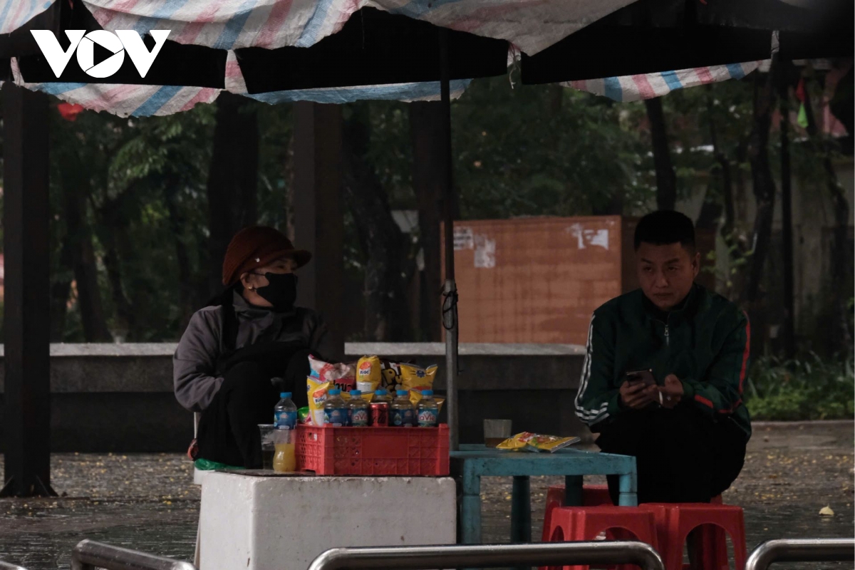 Tại Hà Nội, mưa nhỏ rả rích kéo dài từ đêm đến rạng sáng, hòa cùng những đợt gió lạnh khiến nhịp sống thường ngày bị chậm lại. Ghi nhận trong buổi sớm, tiết trời ẩm ướt và nền nhiệt giảm khiến nhiều hoạt động của người dân bị gián đoạn. Nhiều quán nước ven đường dù đã mở cửa nhưng thưa khách hơn hẳn ngày thường. Trên vỉa hè, người bán trà đá thu mình trong chiếc áo khoác mỏng, co ro giữa màn mưa lạnh đầu ngày.