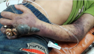 Đến khoảng 22h cùng ngày, bệnh nhân xuất hiện dấu hiệu trở nặng. Gia đình gọi xe cứu thương đưa bà đến Bệnh viện Đa khoa Bình Thuận cấp cứu. Tại đây, bà S trong tình trạng nguy kịch như nôn ra máu, tay sưng to, tím đen, có dấu hiệu hoại tử. Do không có huyết thanh kháng nọc phù hợp, bệnh viện đã chuyển gấp bệnh nhân vào Bệnh viện Chợ Rẫy ngay trong đêm để điều trị chuyên sâu.