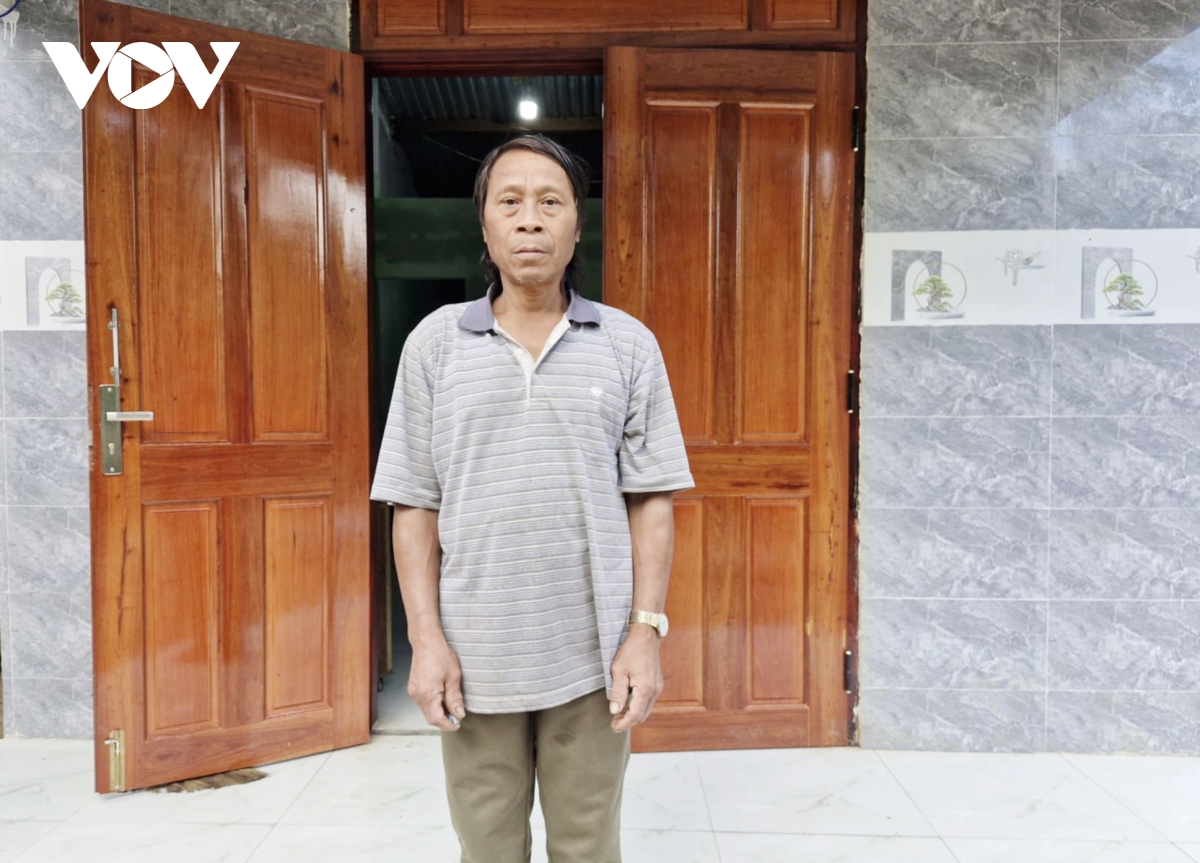 Ông Hồ Văn Úc trong ngôi nhà mới được hỗ trợ theo Nghị quyết 13 của HĐND tỉnh Quảng Nam
