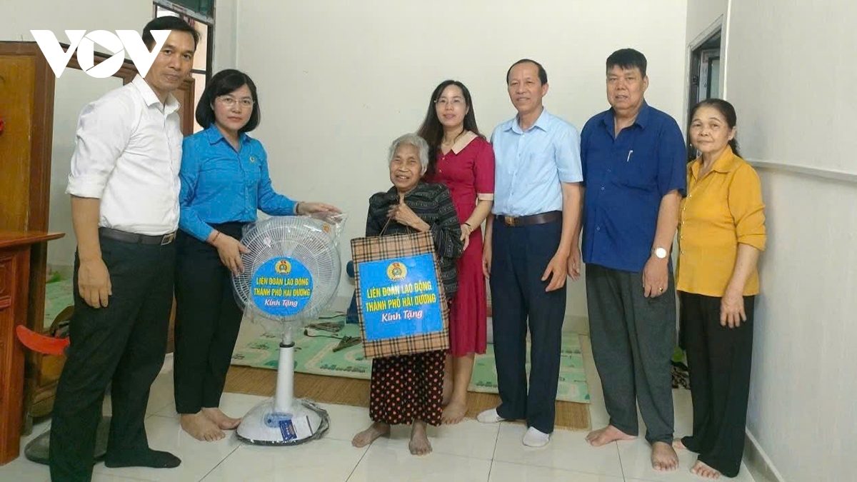 Liên đoàn lao động TP Hải Dương, tỉnh Hải Dương tặng quà, động viên các hộ khó khăn về nhà ở được hỗ trợ xây, sửa nhà trong dịp này.