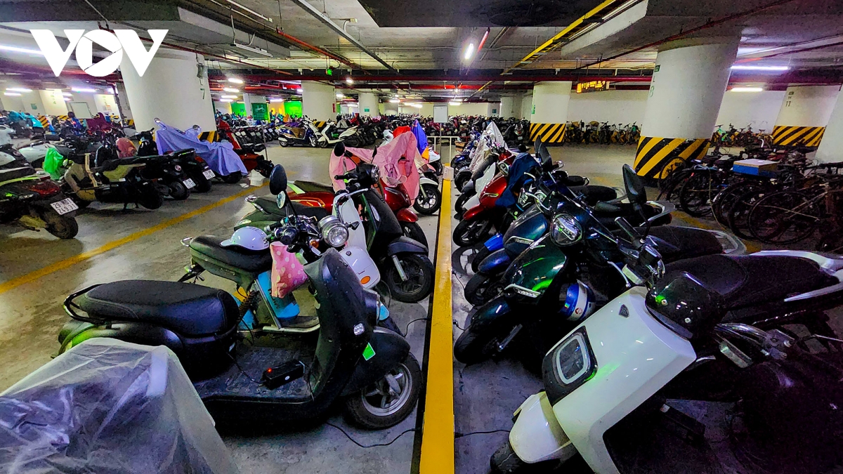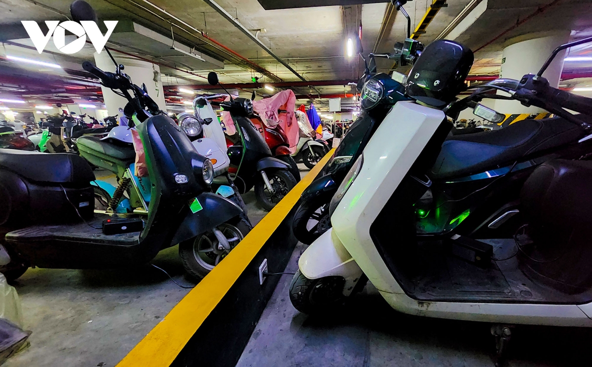 VOV.VN - Hiện tại, rất ít chung cư ở Hà Nội có hạ tầng để tiếp nhận xe điện vào sạc pin trong hầm. Phần lớn mới chỉ dừng lại ở tiếp nhận gửi thông thường vì lo ngại điều kiện an toàn phòng cháy chữa cháy.