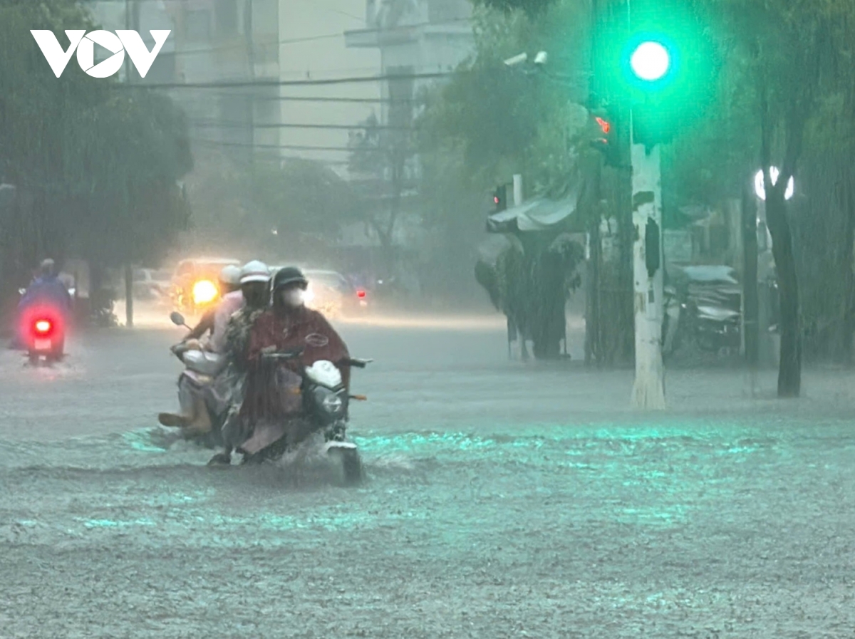 VOV.VN - Trận mưa lớn kéo dài nhiều giờ trong sáng nay làm nhiều tuyến đường tại trung tâm thành phố Đồng Hới, tỉnh Quảng Bình bị ngập cục bộ, ảnh hưởng đến việc đi lại của người dân.