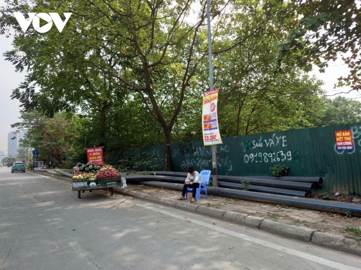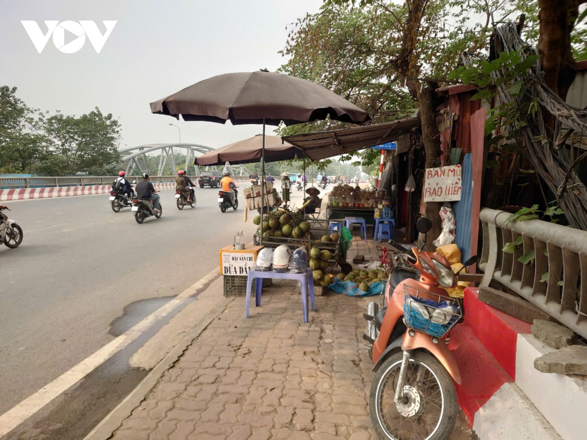 Dọc hai bên tuyến đường hiện đại nhất Thủ đô trở nên nhếch nhác vì hoạt động mua bán tràn lan dưới lòng đường, vỉa hè, gây mất mỹ quan đô thị.