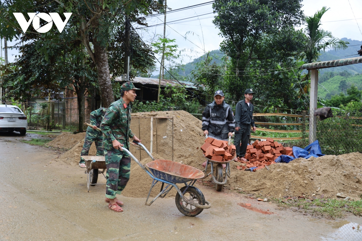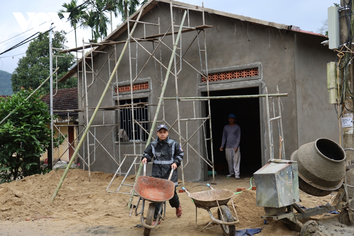 Ngay sau đó, Công an tỉnh Quảng Ngãi đã phối hợp chặt chẽ với các lực lượng vũ trang, chính quyền địa phương và người dân triển khai xây dựng nhà ở giúp người dân. Trong điều kiện thời tiết khắc nghiệt, địa hình phức tạp, cán bộ, chiến sĩ Công an tỉnh Quảng Ngãi, Công an xã Tây Trà, Tiểu đoàn 3, Trung đoàn Cảnh sát cơ động Nam Trung Bộ, lực lượng Bộ Chỉ huy Quân sự tỉnh Quảng Ngãi cùng các đơn vị đã khẩn trương san nền, vận chuyển vật liệu, thi công xây dựng bảo đảm tiến độ và chất lượng công trình.