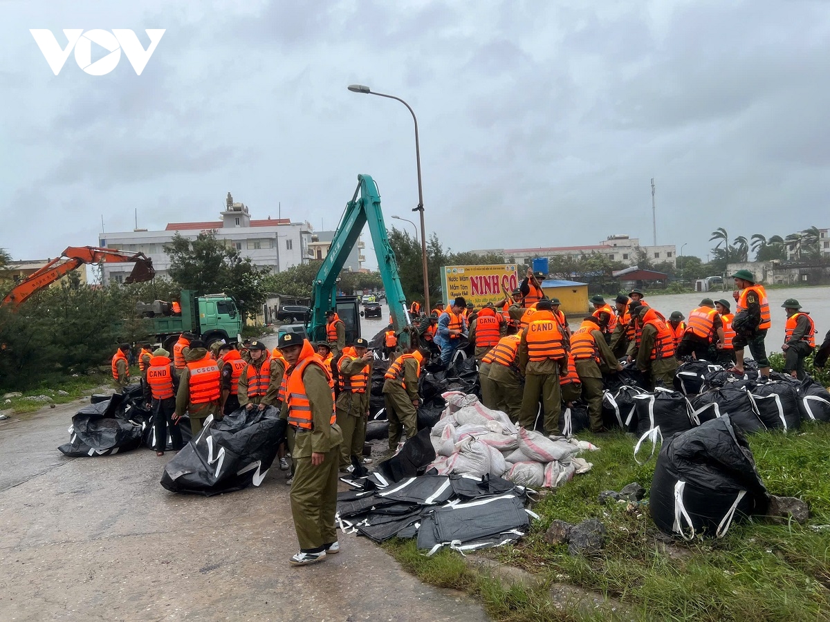 Cụ thể, các lực lượng đã triển khai 30 máy xúc, 30 xe tải, 15 máy cẩu, hơn 2.000 rọ đá hộc, 2.500 khối bê tông đúc sẵn cùng khoảng 1.000m³ cát để gia cố. Khoảng 1.700 cán bộ, chiến sĩ công an, biên phòng, quân đội cùng lực lượng tại chỗ đã phối hợp triển khai nhiệm vụ.