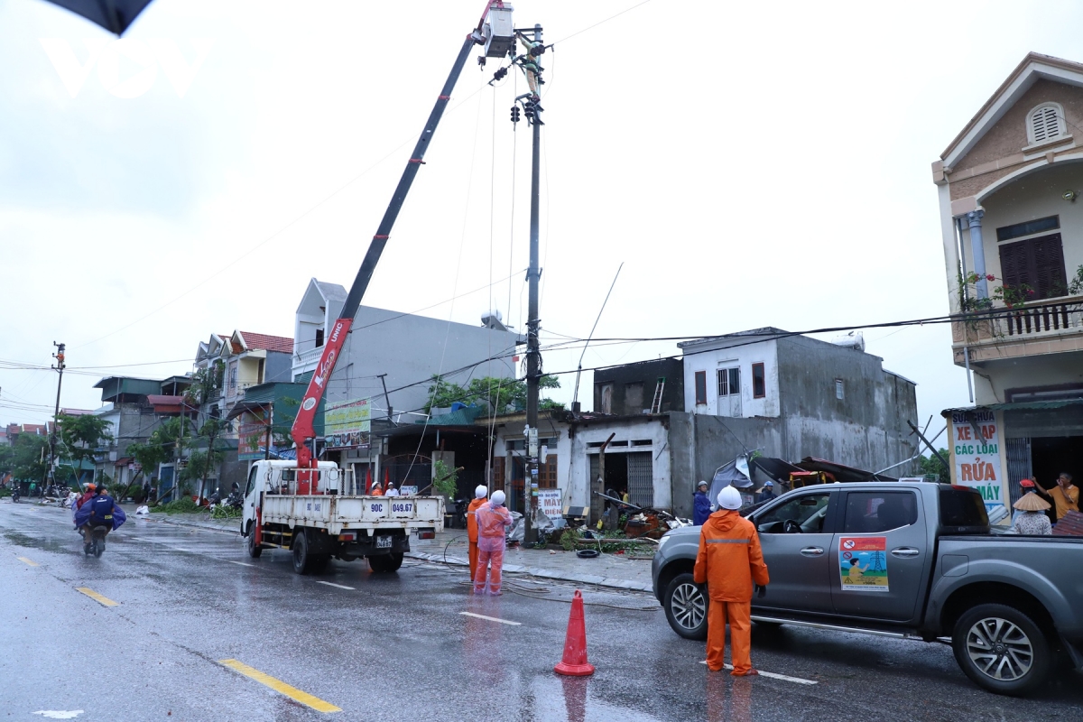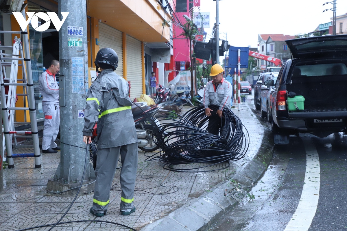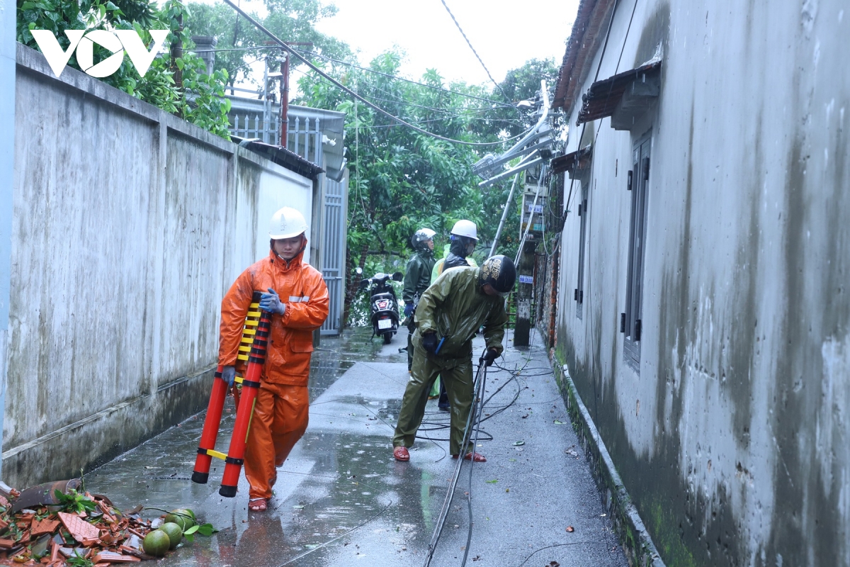 Không phân biện ngành nghề, công nhân điện, viễn thông cùng nhau khắc phục hậu quả của cơn lốc