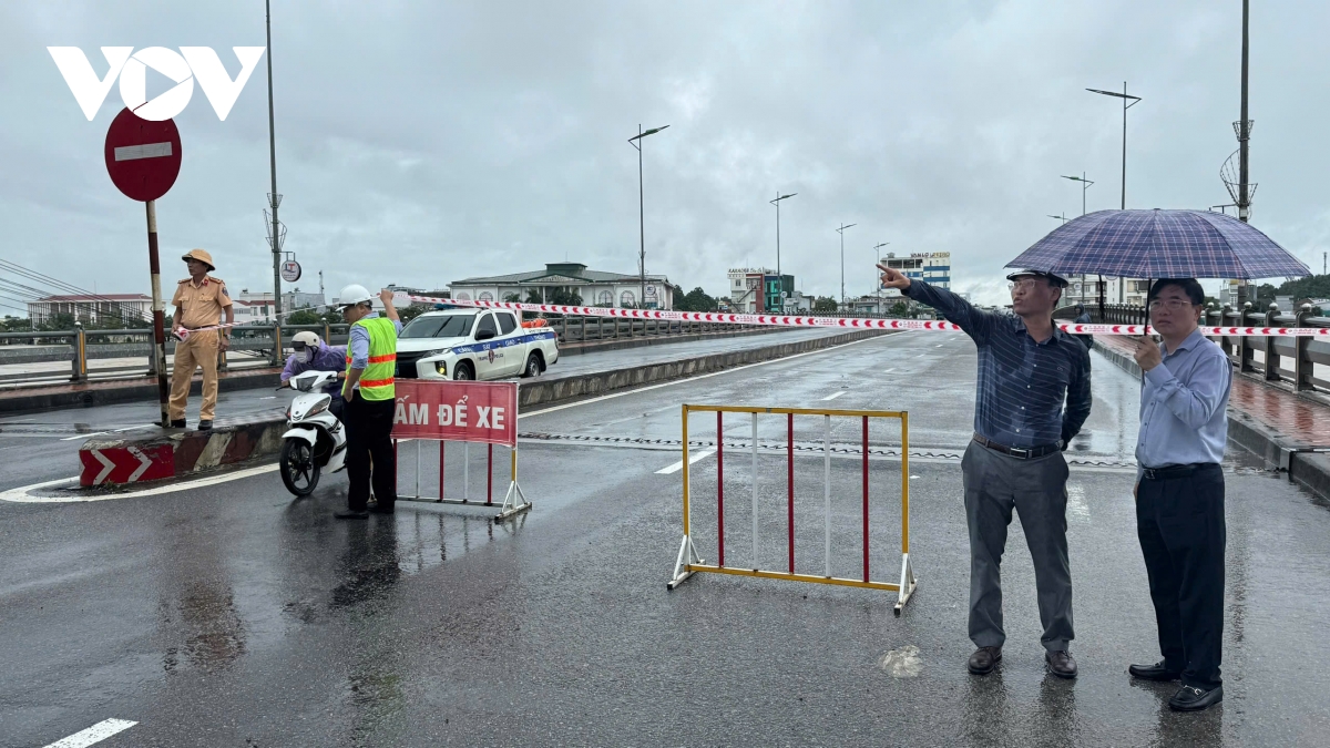 VOV.VN - Nước lũ chạm dầm cầu Châu Ổ thuộc lý trình Km1036+ 261, Quốc lộ 1A qua địa bàn xã Bình Sơn, tỉnh Quảng Ngãi. Để đảm bảo an toàn, lực lượng chức năng đã thực hiện cấm cầu, điều tiết giao thông qua cao tốc Đà Nẵng - Quảng Ngãi và đường ven biển Dung Quất - Sa Huỳnh.