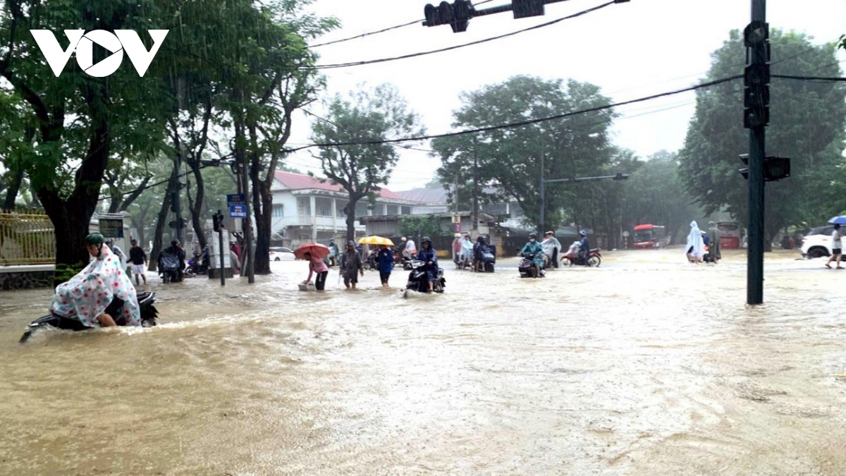 VOV.VN - Tối 27/10, mưa lớn kéo dài khiến mực nước trên các sông ở thành phố Huế tiếp tục dâng nhanh, gây ngập sâu trên diện rộng. Lũ trên sông Hương và sông Bồ đã vượt mức báo động 3 hơn một mét, nhiều nơi tiệm cận hoặc vượt mốc lũ lịch sử năm 1999.