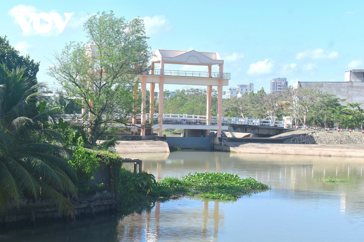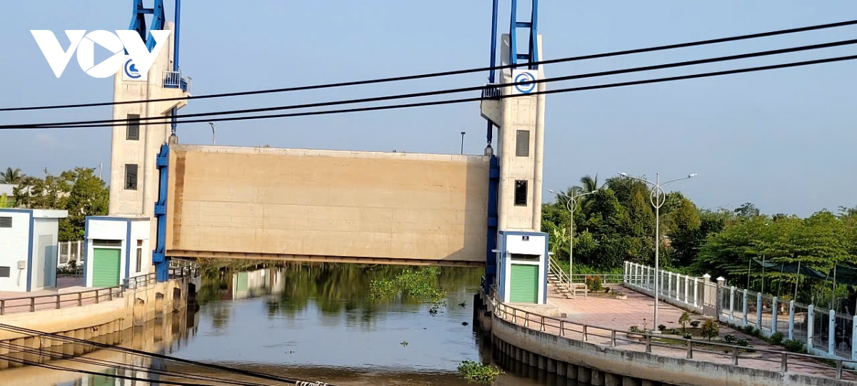 VOV.VN - Mấy ngày nay nước mặn trên sông Tiền tăng cao, cơ quan vận hành cống đập ven sông đóng kín để trữ ngọt, ngăn mặn.