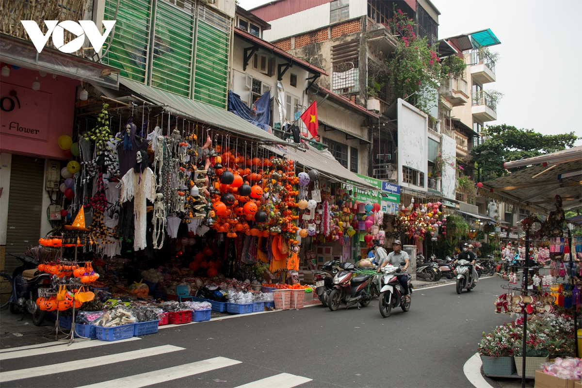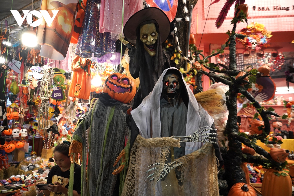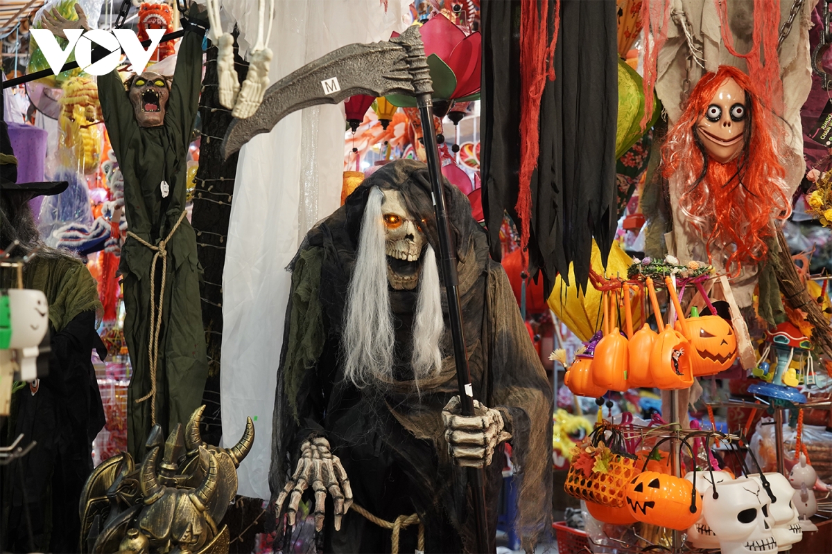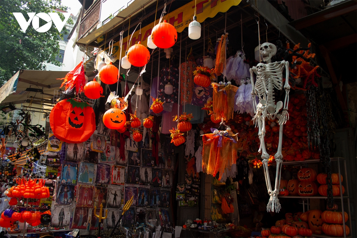 VOV.VN - Chỉ còn hơn 1 tuần nữa là ngày Halloween, phố Hàng Mã (Hoàn Kiếm, Hà Nội) đã tràn ngập các loại đồ chơi và mặt hàng trang trí để phục vụ cho lễ hội hóa trang trong ngày cuối cùng của tháng 10.