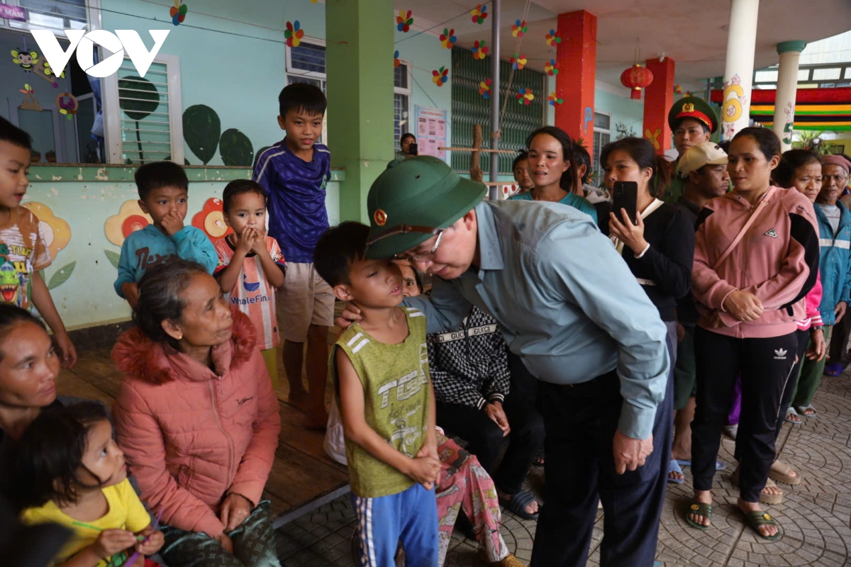 Phó Thủ tướng Hồ Quốc Dũng thăm hỏi người dân tại điểm sơ tán Trường Mầm non số 1 Hương Trà, tổ 1 thôn Trà Linh, xã Tây Trà Bồng.
