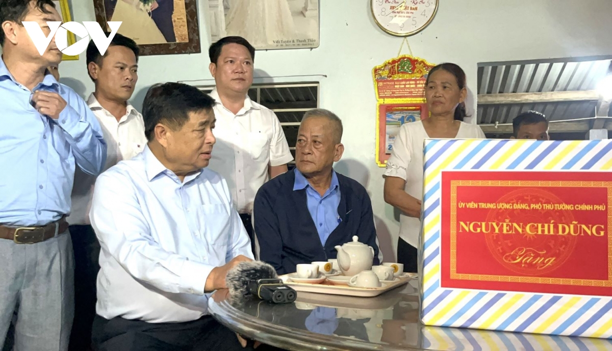 Phó Thủ tướng Nguyễn Chí Dũng tặng quà đến gia đình ông Võ Viết Quang ở tổ dân phố Lương Xuân, phường Hương Thủy, thành phố Huế