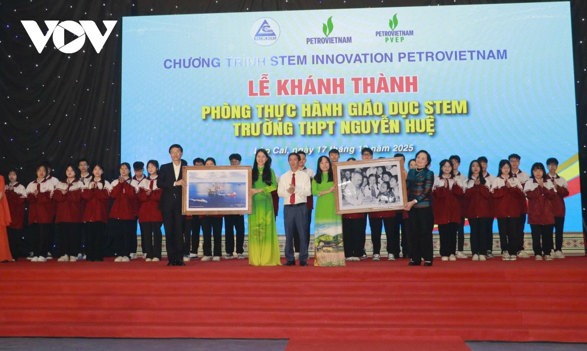 VOV.VN - Sáng nay 17/12, Phó Thủ tướng Phạm Thị Thanh Trà tới dự lễ khánh thành phòng thực hành giáo dục STEM tại Trường THPT Nguyễn Huệ, phường Yên Bái, tỉnh Lào Cai. Đây là Chương trình của Tập đoàn Công nghiệp - Năng lượng quốc gia trao tặng 100 phòng học STEM đạt chuẩn quốc tế trên cả nước.