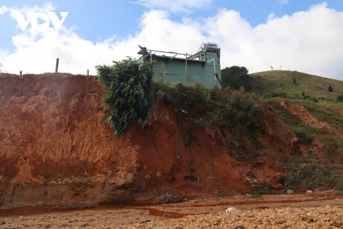 Do ảnh hưởng của các đợt mưa bão vừa qua, suối Đăk Ter đoạn qua trung tâm xã Tu Mơ Rông liên tục xảy ra sạt lở nghiêm trọng. Tại hiện trường, bờ suối bị khoét sâu thành vách đứng, đất đá sụt lún từng mảng lớn. Nhiều căn nhà nằm sát mép suối, nền đất bị xói hàm ếch, chỉ cần thêm một trận mưa lớn hoặc dòng chảy mạnh là có nguy cơ đổ sập, kéo theo công trình trôi xuống lòng suối.