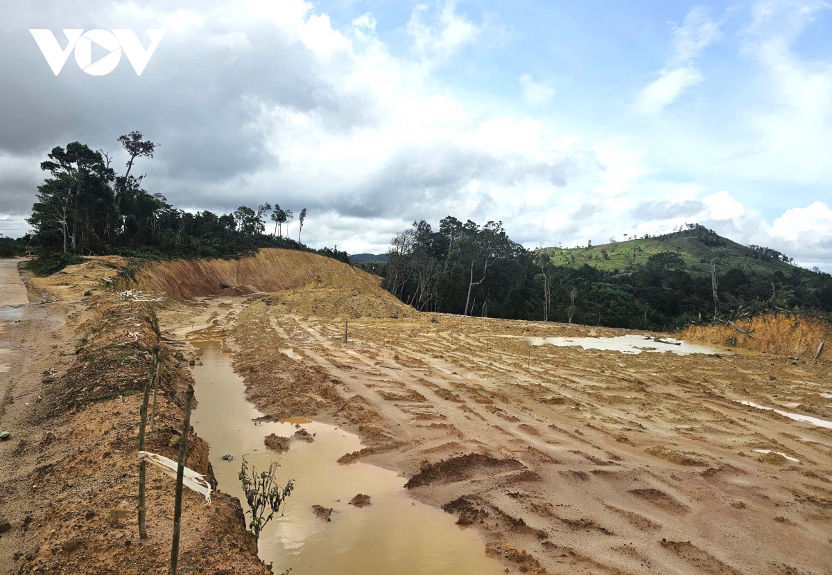Đại diện Ban Quản lý dự án đầu tư xây dựng các công trình giao thông, dân dụng và công nghiệp tỉnh Quảng Ngãi cho biết, do thủ tục chuyển đổi rừng, tận thu lâm sản kéo dài, vướng 15,3 km giải phóng mặt bằng, di dời lưới điện chậm và nguồn vật liệu chưa được khai thác trở lại nên ảnh hưởng tiến độ công trình.