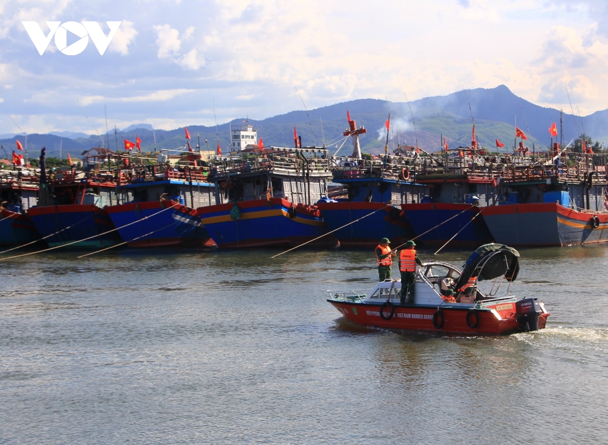 Trong chiều nay (23/8), tại âu tàu Cửa Phú, phường Đồng Hới, tỉnh Quảng Trị, tàu cá đánh bắt xa bờ lần lượt vào neo đậu tránh trú bão. Lực lượng Bộ đội Biên phòng tỉnh Quảng Trị và Ban Quản lý âu tàu Cửa Phú đã hướng dẫn, hỗ trợ ngư dân neo đậu, sắp xếp tàu thuyền khoa học, tránh va chạm.