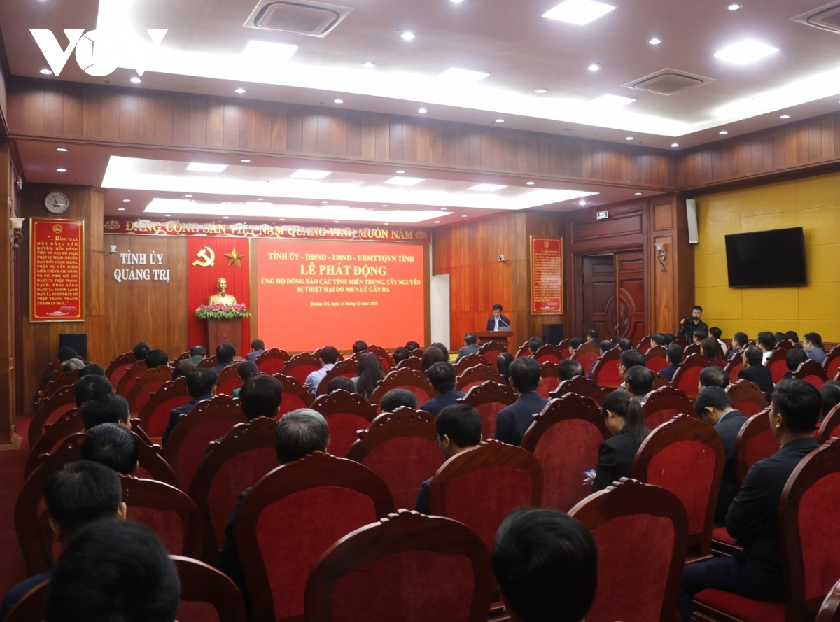 VOV.VN - Sáng nay (24/11), Tỉnh ủy, HĐND, UBND và Ủy ban Mặt trận Tổ quốc Việt Nam tỉnh Quảng Trị phát động quyên góp ủng hộ đồng bào miền Trung- Tây Nguyên bị thiệt hại do mưa lũ.