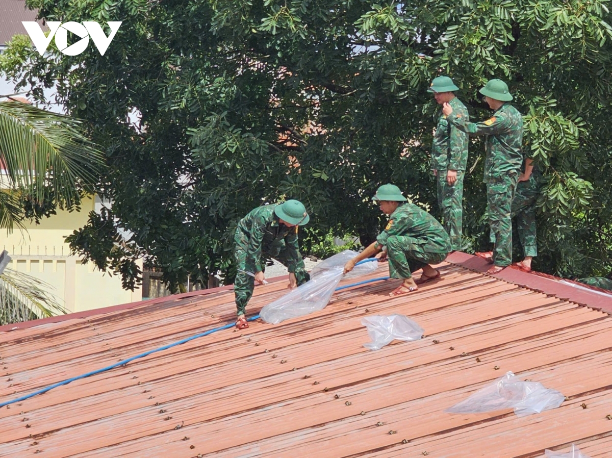 Bộ đội Biên phòng giúp người dân gia cố mái nhà