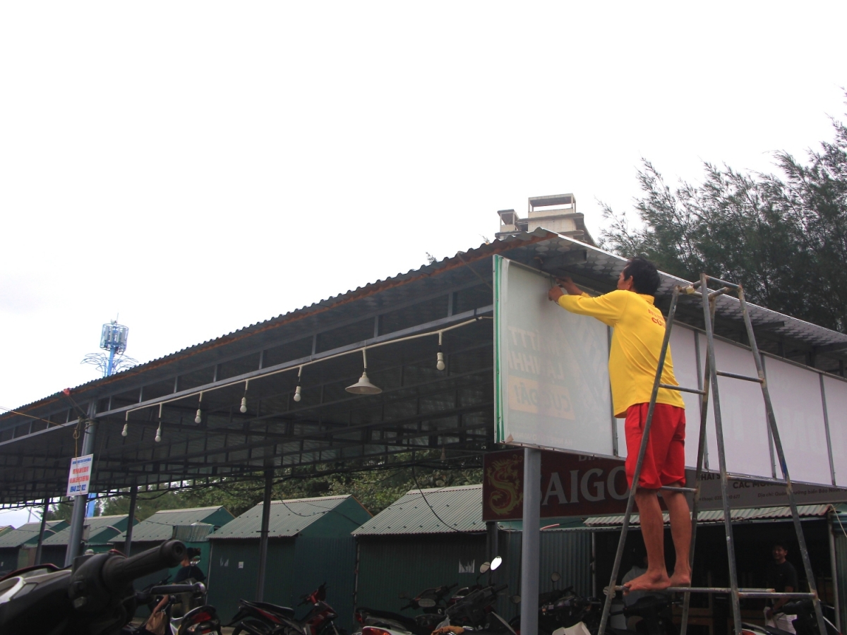 Người dân ven biển gia cố mái tôn tại hàng quán