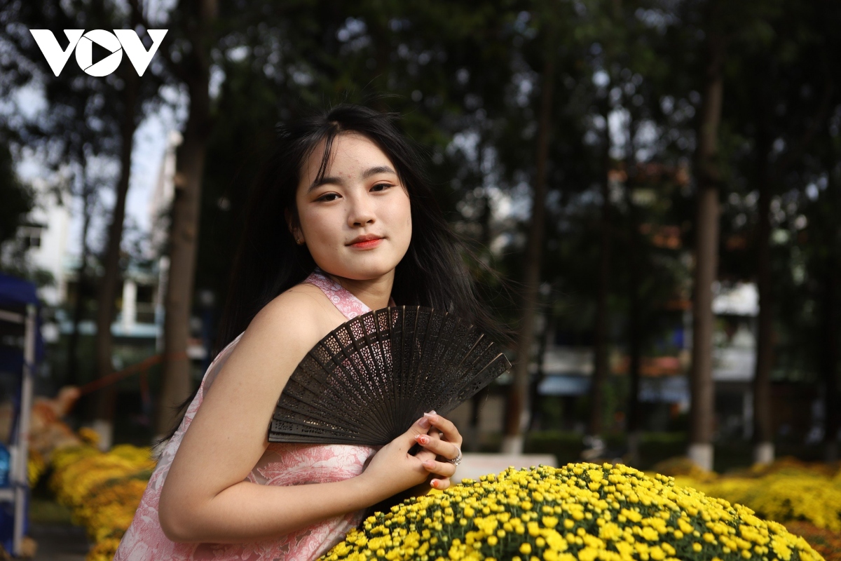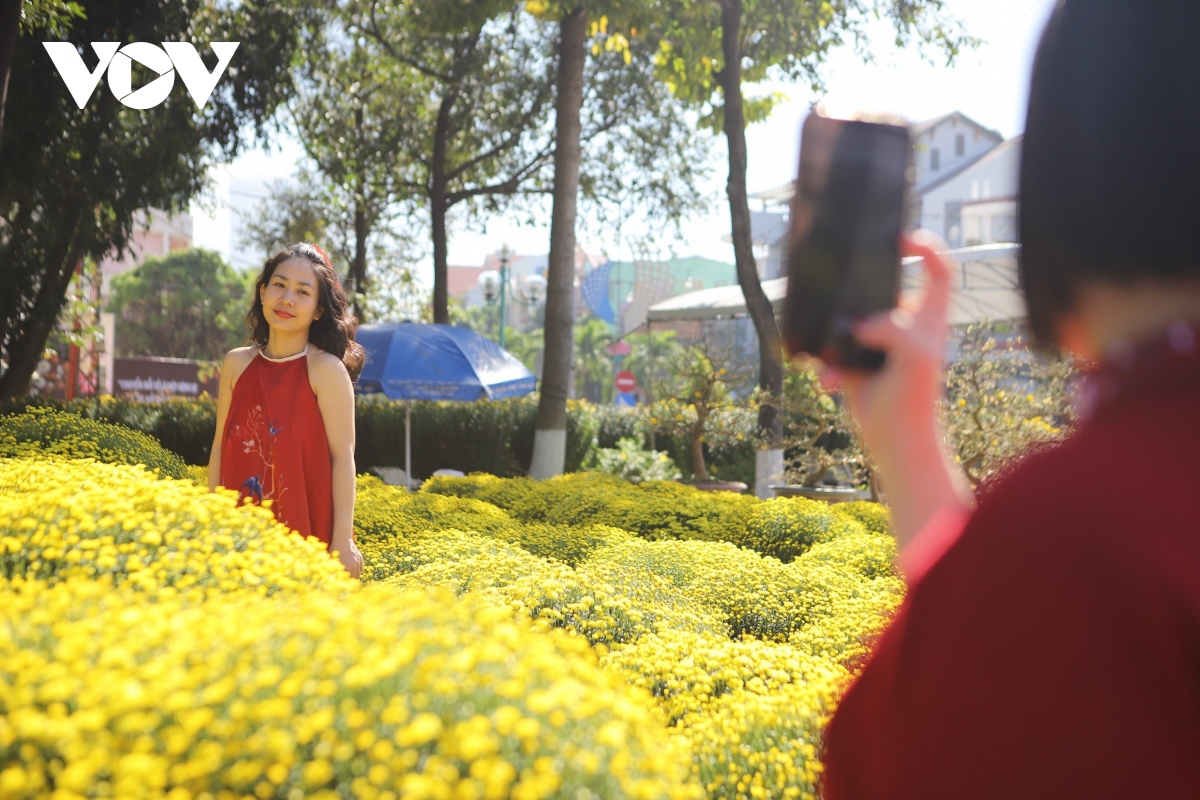 Bạn trẻ check in tại khu vực bán hoa Tết đường Nguyễn Tất Thành,