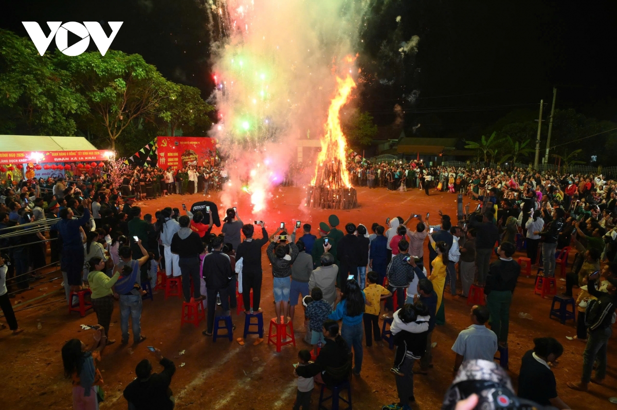 Đến đêm, nơi đây trở thành hội xuân đậm sắc văn hóa Tây Nguyên với lửa trại và nhiều tiết mục văn nghệ ca ngợi quê hương, đất nước hòa cùng tiếng cồng chiêng, điệu múa truyền thống.