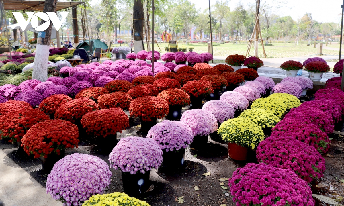 Nhiều loài hoa rực rỡ sắc màu được bày bán tại chợ hoa. Hoa được trưng bày đa dạng về chủng loại, màu sắc và kích cỡ, đáp ứng nhu cầu của người dân dịp Tết.