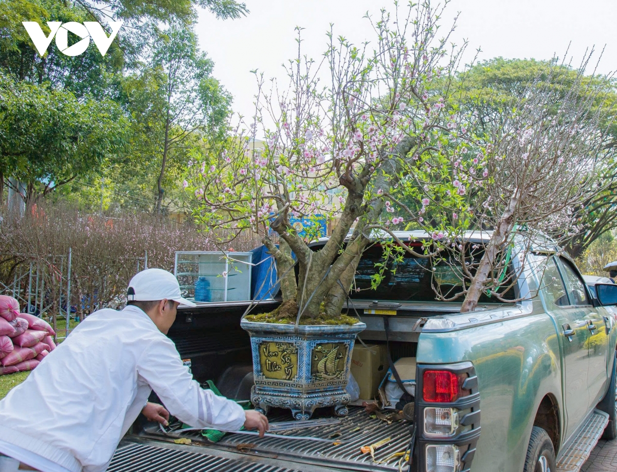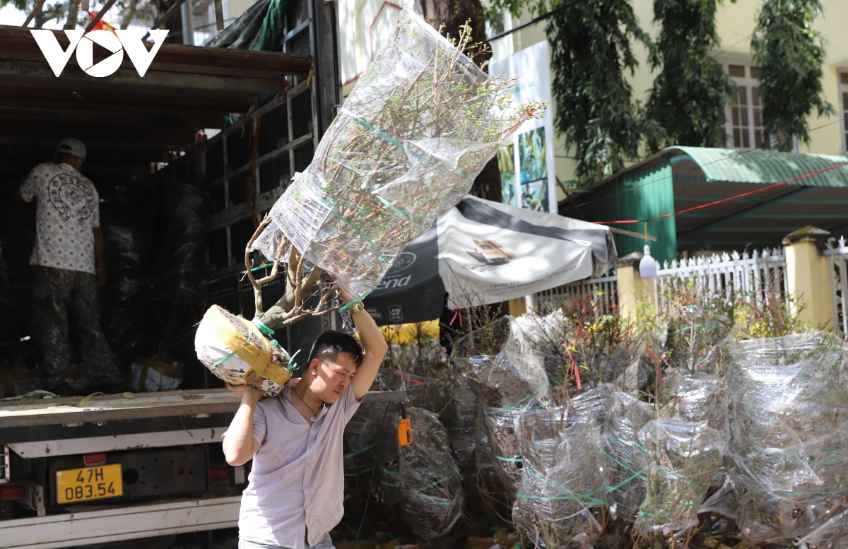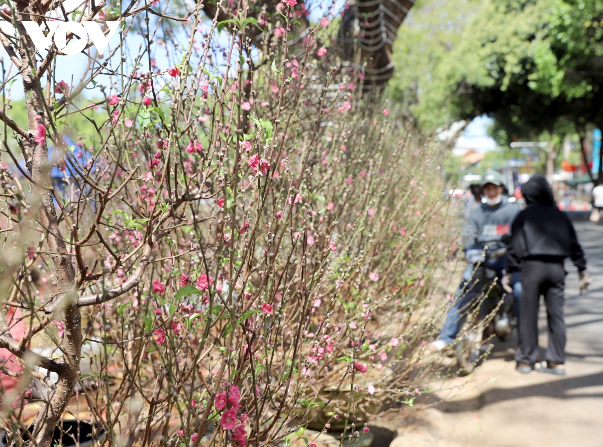 Hoa đào từ các tỉnh phía Bắc được đưa về Buôn Ma Thuột phục vụ người chơi hoa.