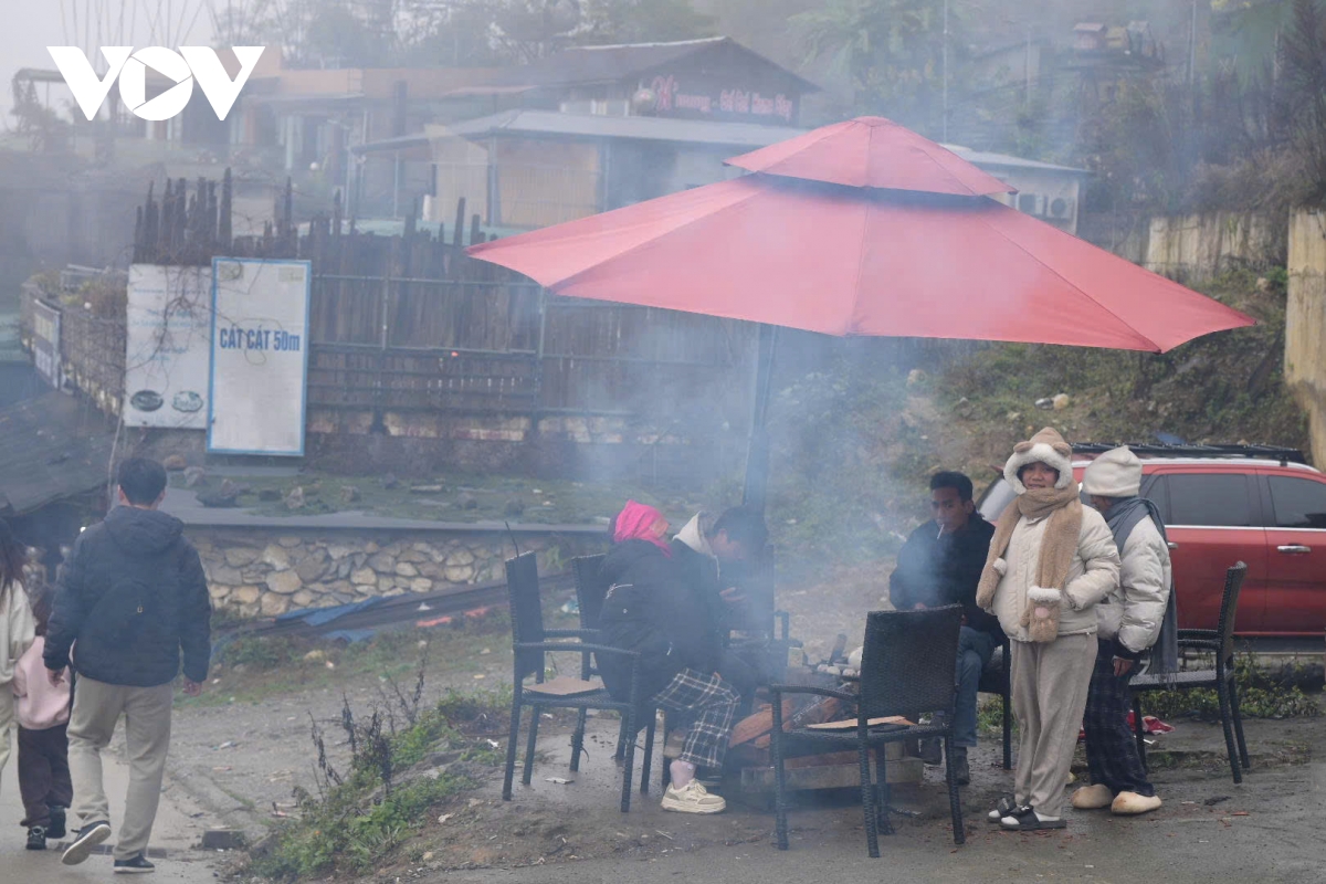 Người dân lao động phải tìm đủ cách để chống chọi với giá rét. Những đống lửa được đốt lên ngay ven đường xuống bản Cát Cát trở thành nơi "trú ẩn" tạm thời, xua tan cái lạnh tê tái cho những người lái xe ôm hay người bán hàng rong tại Sa Pa.