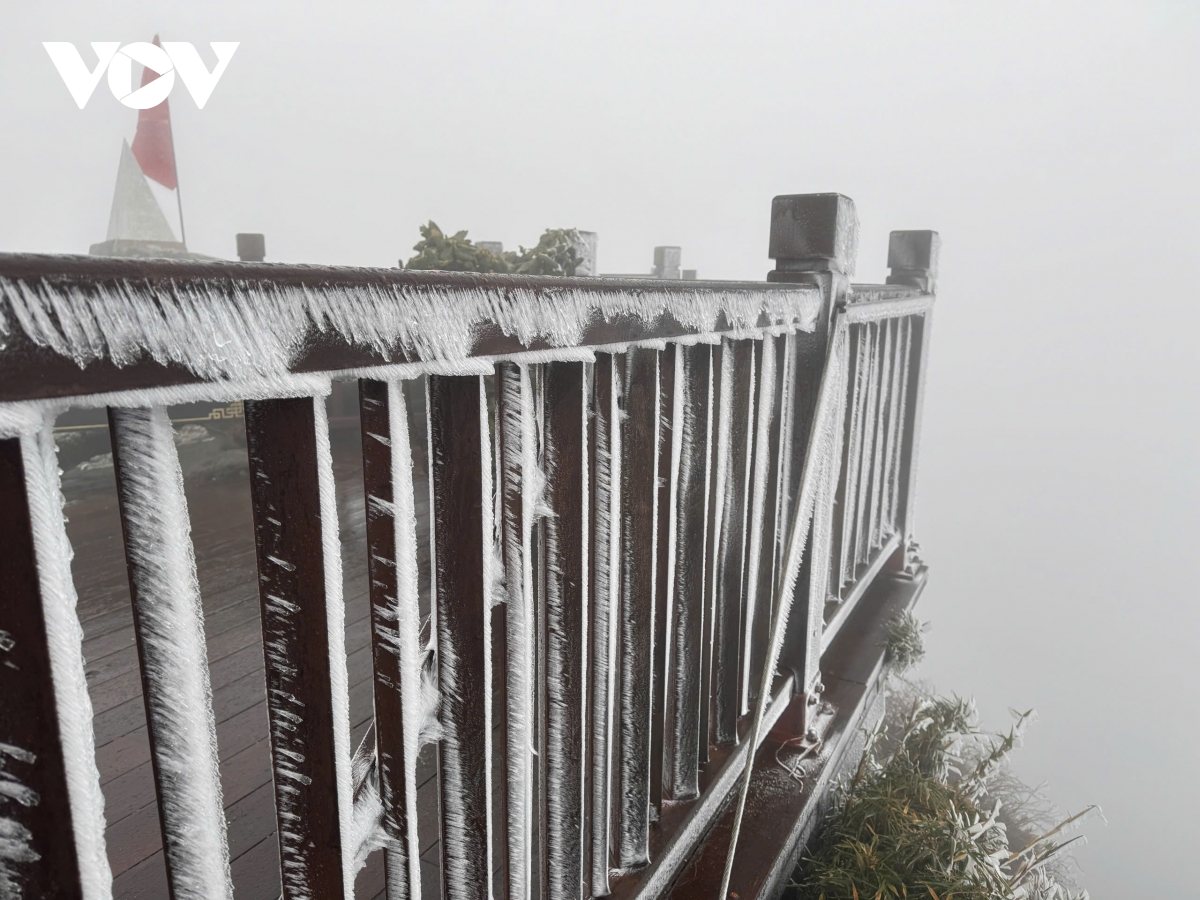 Băng giá xuất hiện dày đặc trên đỉnh Fansipan sáng sớm 7/1