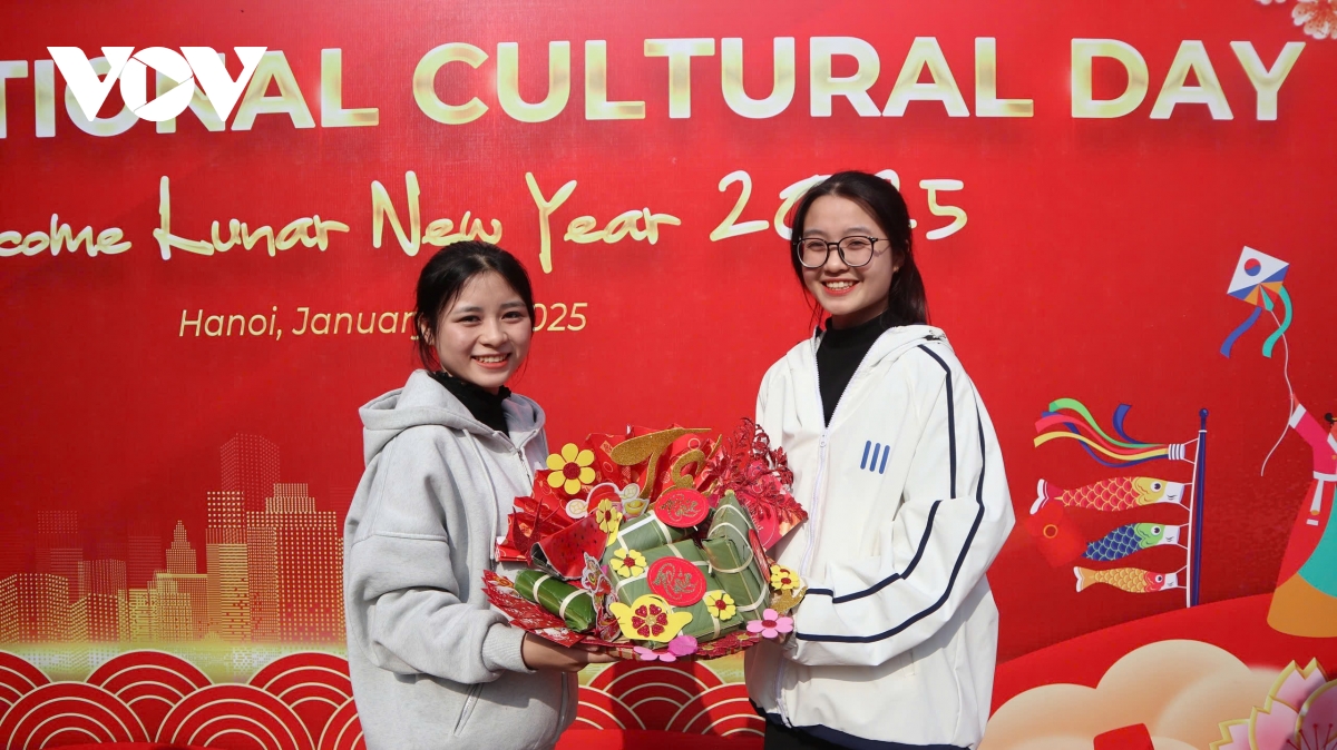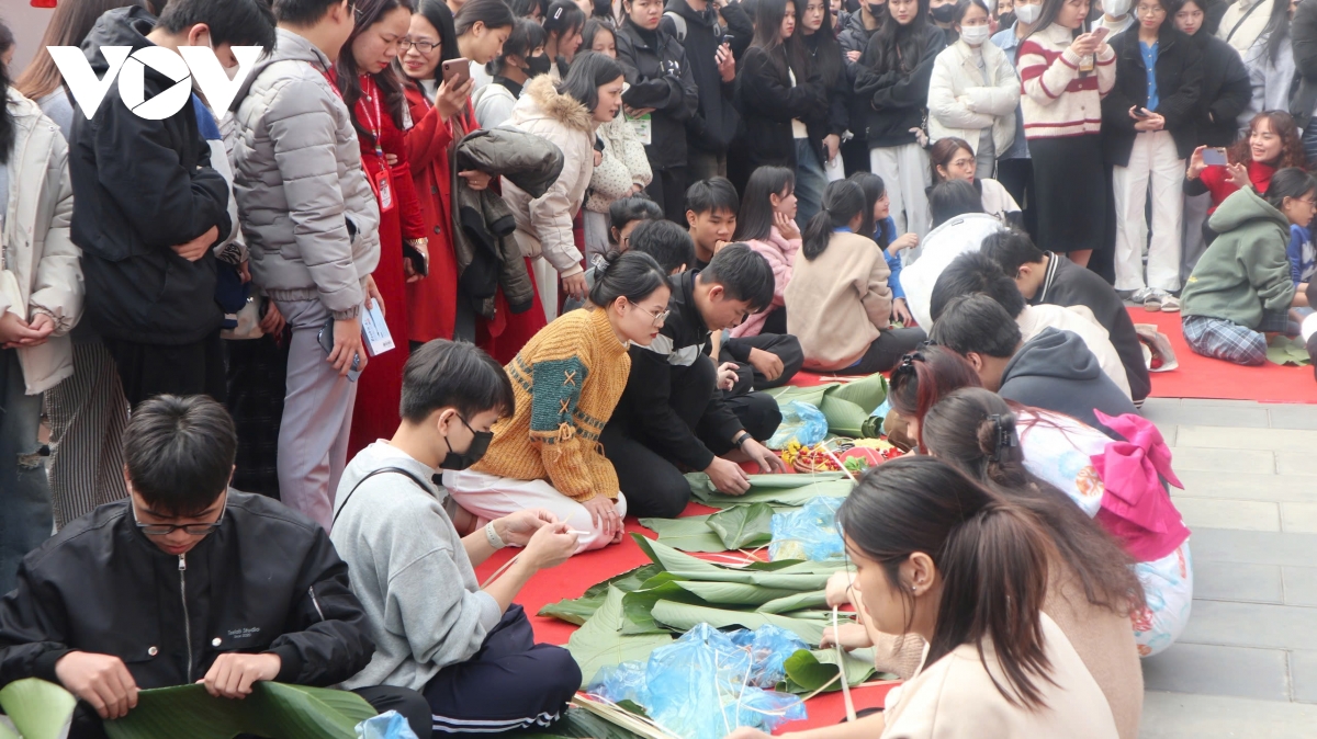 Đặc biệt, trong không gian đa chiều của ngày hội, sinh viên đã tái hiện bức tranh đón Tết cổ truyền Việt Nam qua các hoạt động như: thi gói bánh chưng, thi dựng gian trại ngày Tết, thi kéo co, nhảy sạp, bắt vịt… là những trò chơi dân gian gắn liền với tuổi thơ mỗi người.