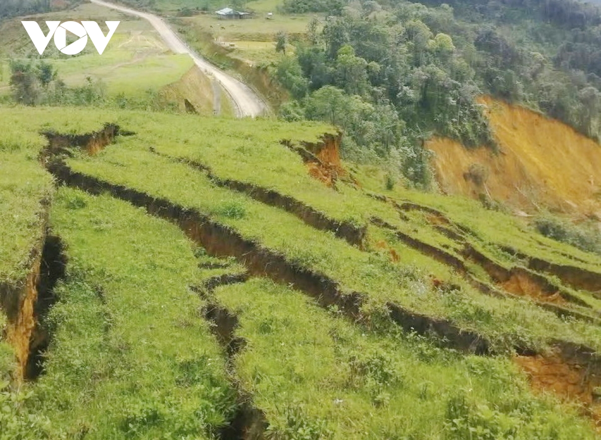 Tại 2 xã Đắc Pring, La Dêê (huyện Nam Giang, tỉnh Quảng Nam cũ) nhiều vết nứt lớn xuất hiện trên sườn núi, kéo dài hàng trăm mét. Đất đá sạt trượt tạo thành hàm ếch lớn đe dọa trực tiếp khu dân cư và công trình phúc lợi.
