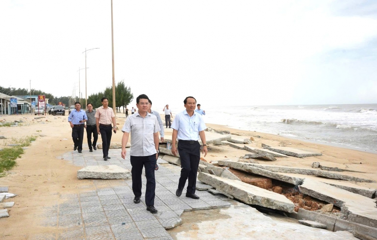 Lãnh đạo thành phố Huế kiểm tra bờ biển Thuận An bị sạt lở sau bão số 10