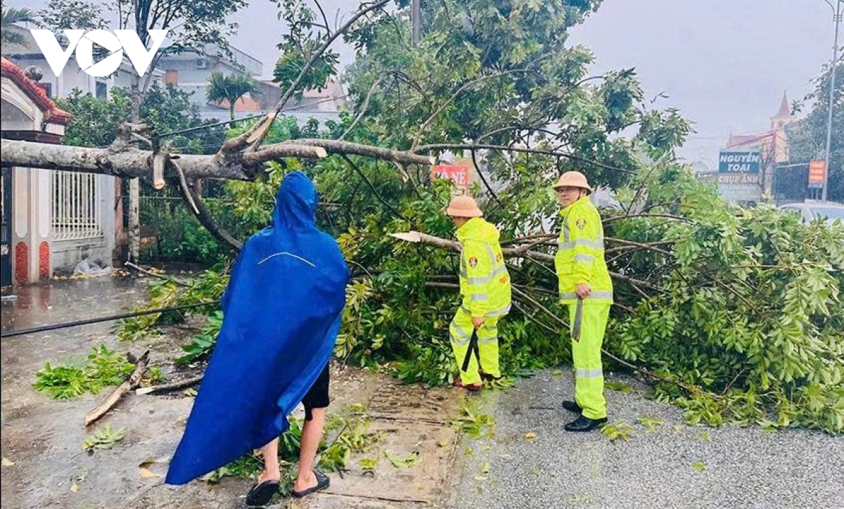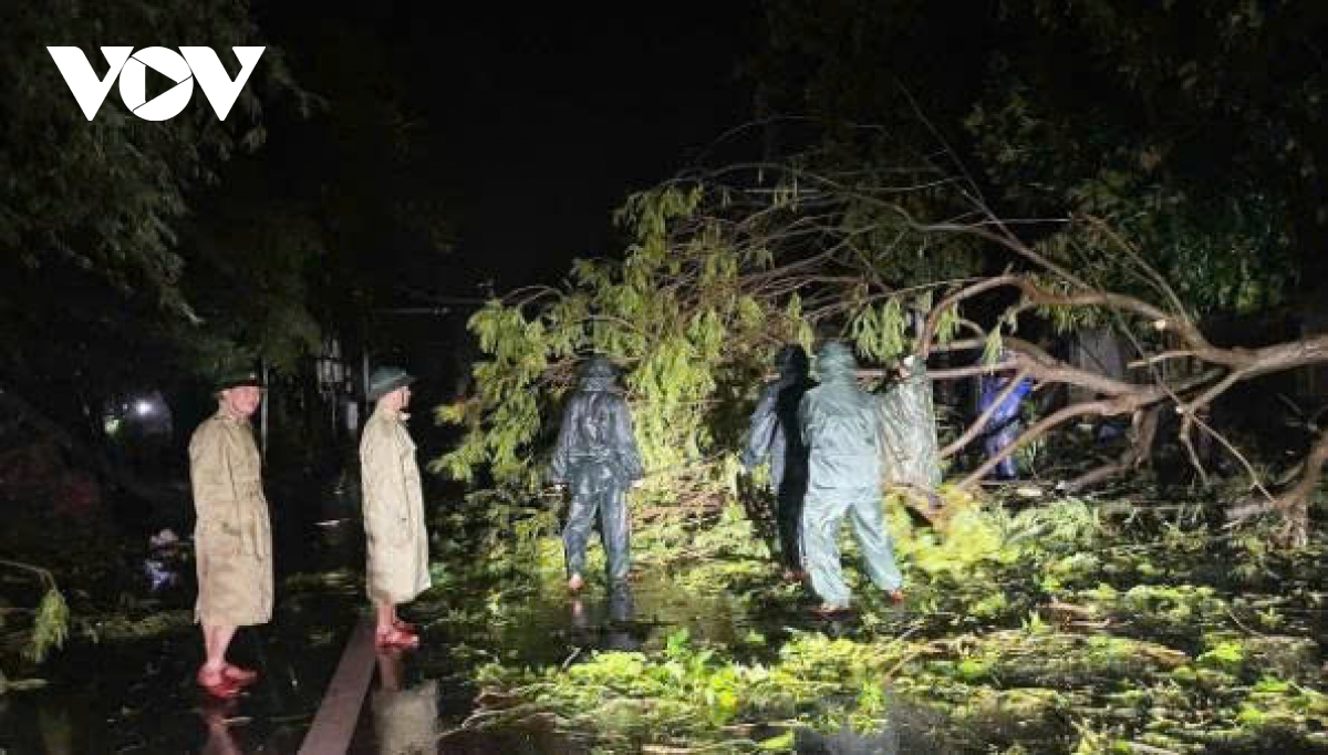 Phóng viên Bá Thăng/VOV.VN tại Nghệ An cho biết, ngay trong đêm 25/8 và rạng sáng 26/8, Bộ Chỉ huy Quân sự tỉnh Nghệ An đã huy động hơn 150 cán bộ, chiến sĩ và Dân quân tự vệ để khắc phục hậu quả do bão số 5 gây ra. Bão số 5 đã gây mưa lớn và gió mạnh, quật ngã hàng trăm cây xanh, trong đó có nhiều cây lâu năm, làm ách tắc giao thông nghiêm trọng trên nhiều tuyến đường trọng điểm.