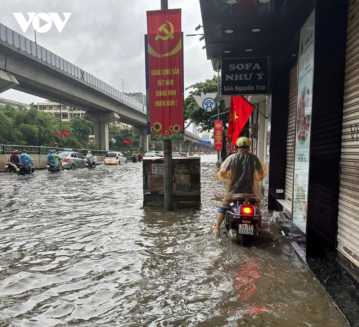 Do ảnh hưởng hoàn lưu phía Bắc của bão số 5, đêm qua và sáng nay (26/8) Hà Nội đã có mưa rất lớn, lượng mưa phổ biến từ 70-150mm, có nơi trên 200mm như trạm Quốc Oai (Hà Nội) 211mm, trạm Đại Mỗ (Hà Nội) 201.7mm. Mưa lớn khiến nhiều tuyến phố tại Thủ đô ngập sâu, có nơi ghi nhận ngập trên 50cm.