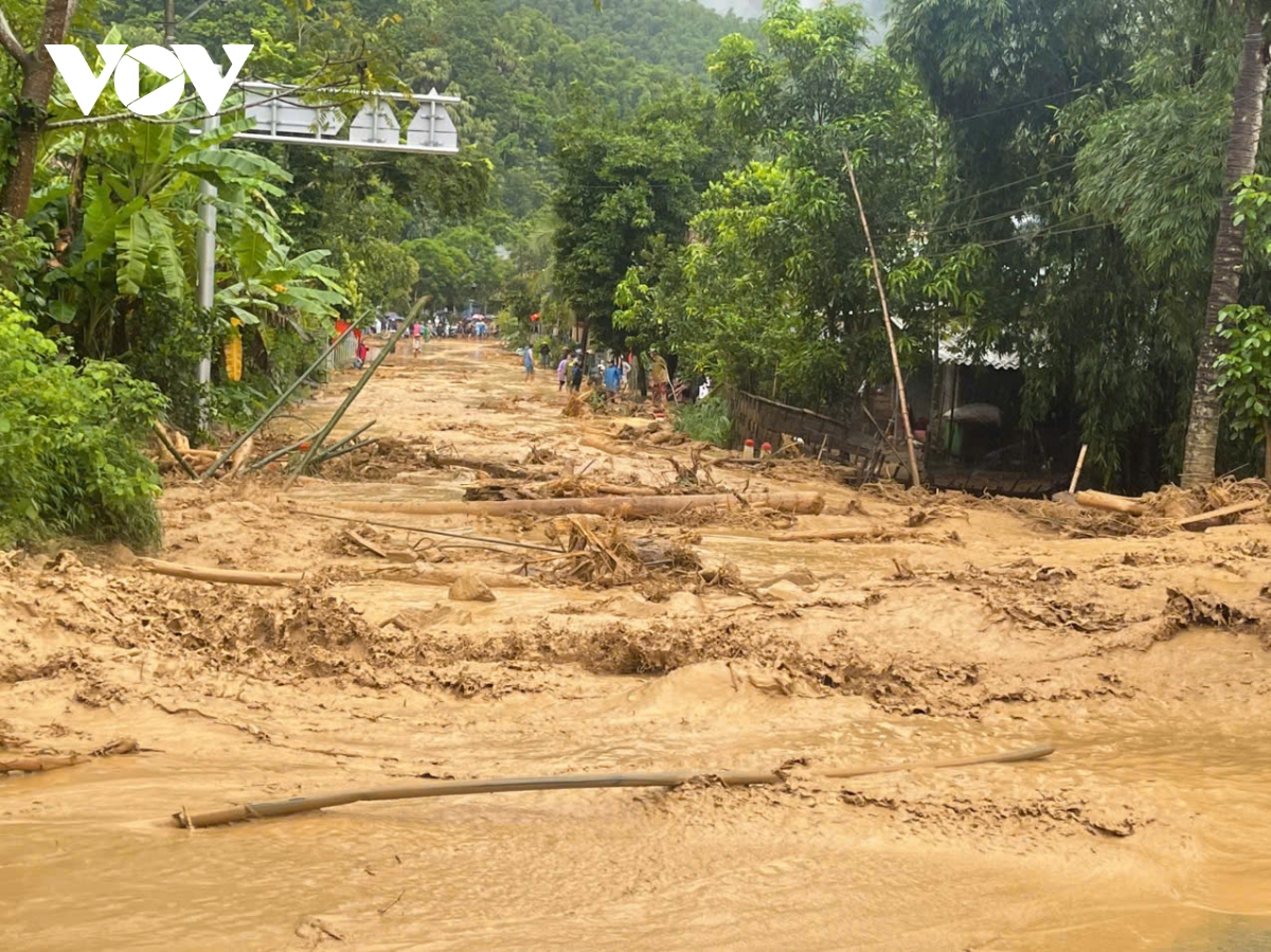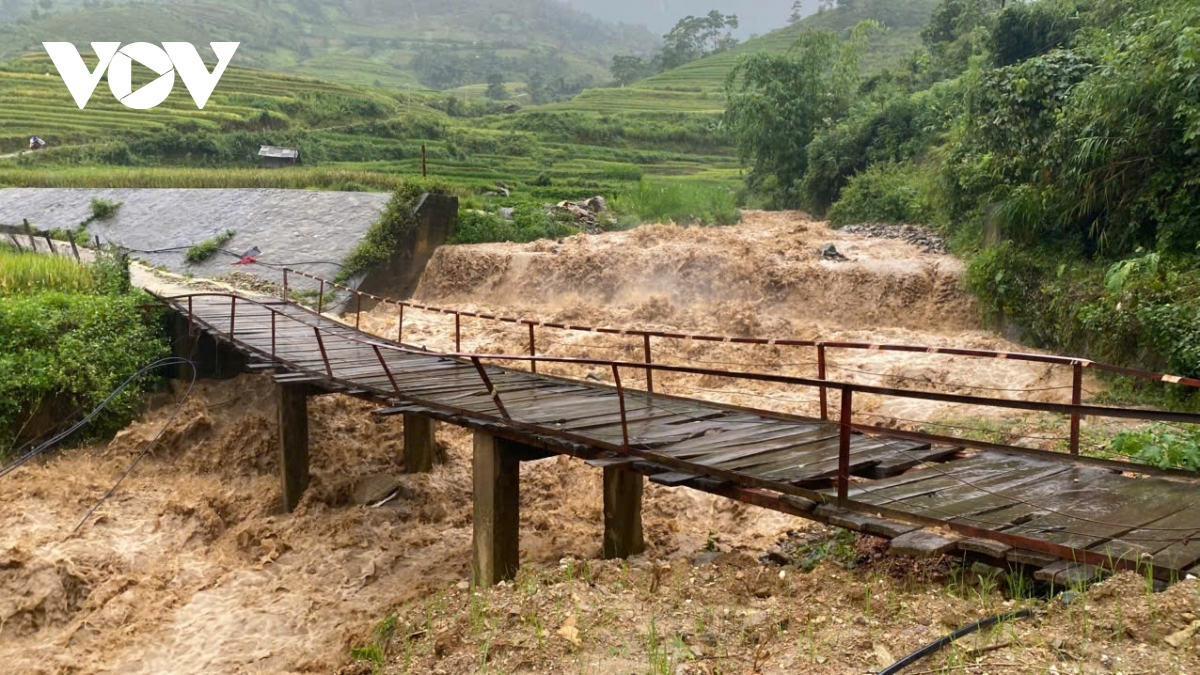 VOV.VN - Ảnh hưởng của hoàn lưu bão số 5 kết hợp với hội tụ gió trên cao đã gây mưa lớn trên địa bàn tỉnh Lào Cai, nhiều nơi mưa đặc biệt lớn như Cao Phạ trên 229mm, Tà Si Láng gần 230mm, Suối Giàng 169mm... Mưa lũ, sạt lở đã gây ảnh hưởng đến sản xuất và đời sống của người dân.