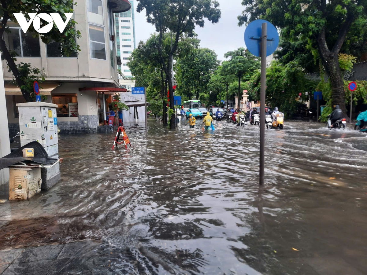 VOV.VN - Theo dự báo trong ngày 26/8, Thủ đô Hà Nội chịu tác động của hoàn lưu hậu bão số 5, nên tiếp tục có mưa to kéo dài, nguy cơ xảy ra ngập úng diện rộng với độ sâu ngập lớn nhất phổ biến từ 0,20-0,40m, có nơi ngập sâu hơn.