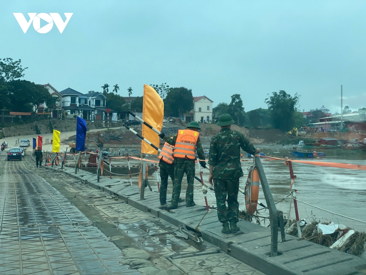Thông tin từ Lữ đoàn 249 - Binh Chủng Công binh cho biết: Do ảnh hưởng cơn bão số 5, lượng nước thượng nguồn về nhiều, lưu tốc nước tăng, cầu phao Phong Châu tạm dừng hoạt động từ 08h00 sáng nay (26/8). Đơn vị sẽ có thông báo nối lại cầu hoặc phà sau khi điểu kiện thuỷ văn cho phép