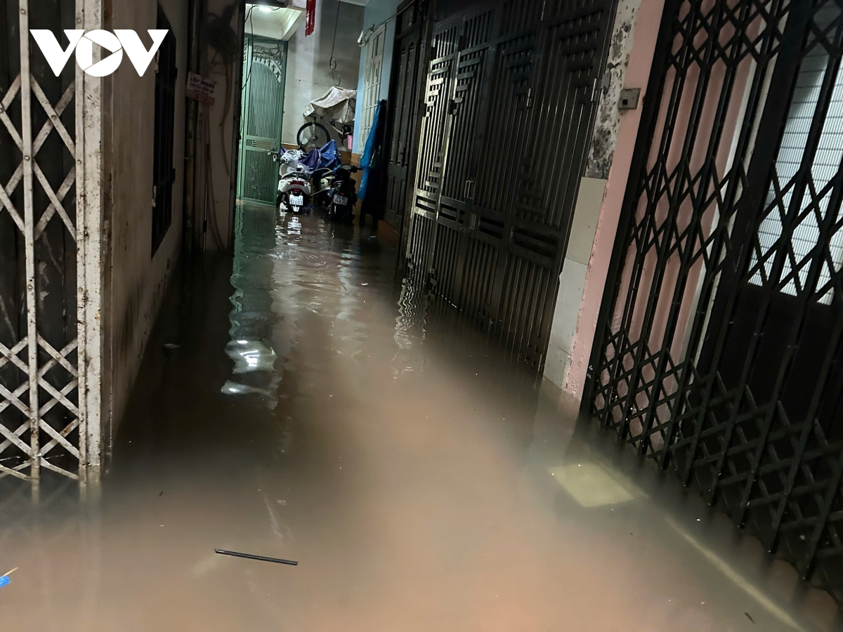 Đến trưa nay, tình trạng ngập lụt tại Hà Nội vẫn nghiêm trọng. Tại phố Kim Mã (Hà Nội), nước đã ngập ngang ngõ, khiến sinh hoạt của người dân bị đảo lộn. Nhiều gia đình vội vã kê đồ đạc lên cao, một số hộ phải hì hục tát nước ra ngoài để chống ngập.