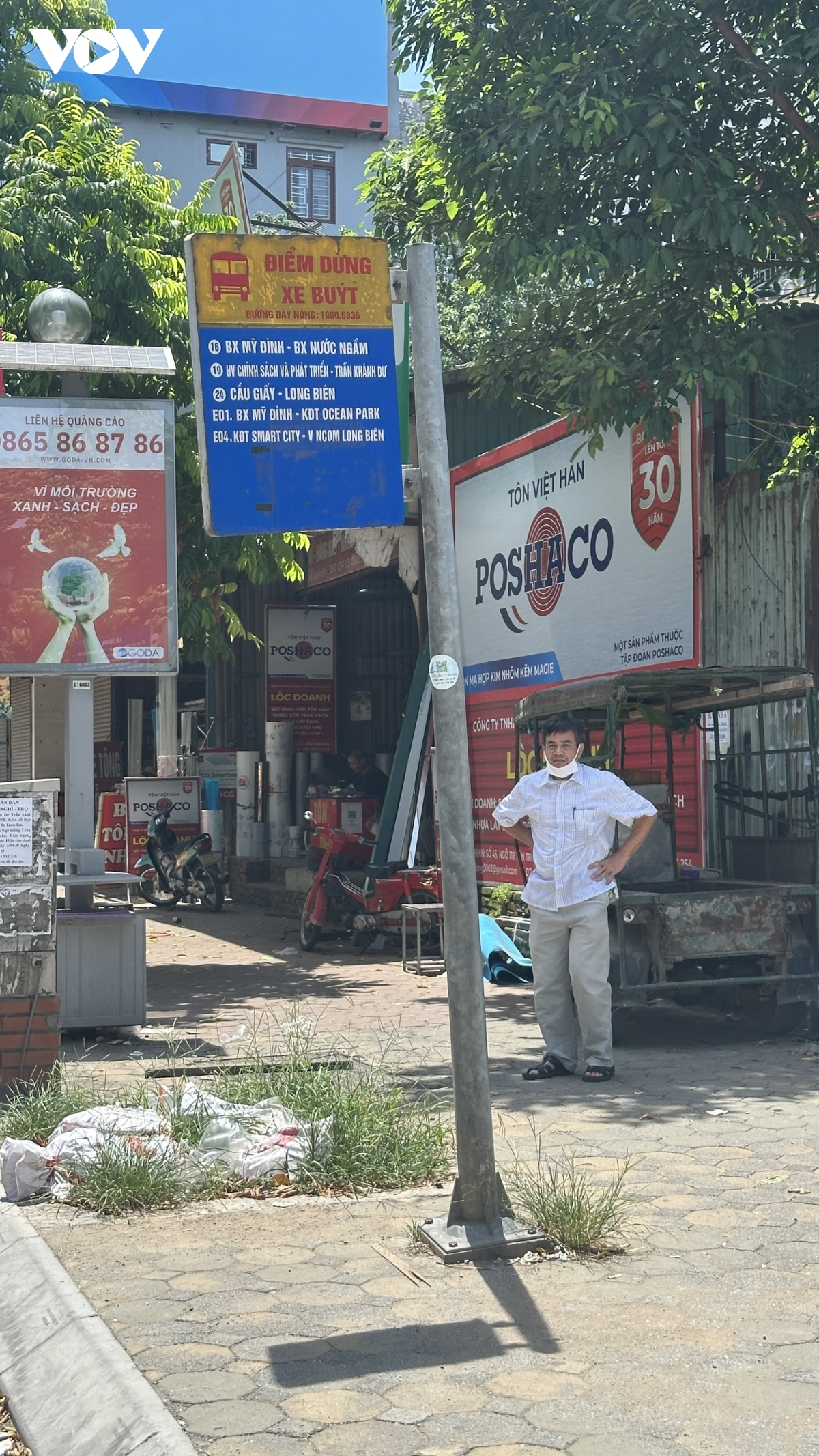 Những bao phế thải vật liệu xây dựng trên đường Trần Thánh Tông gần khu vực Nhà tang lễ quốc gia, Bệnh viện 108